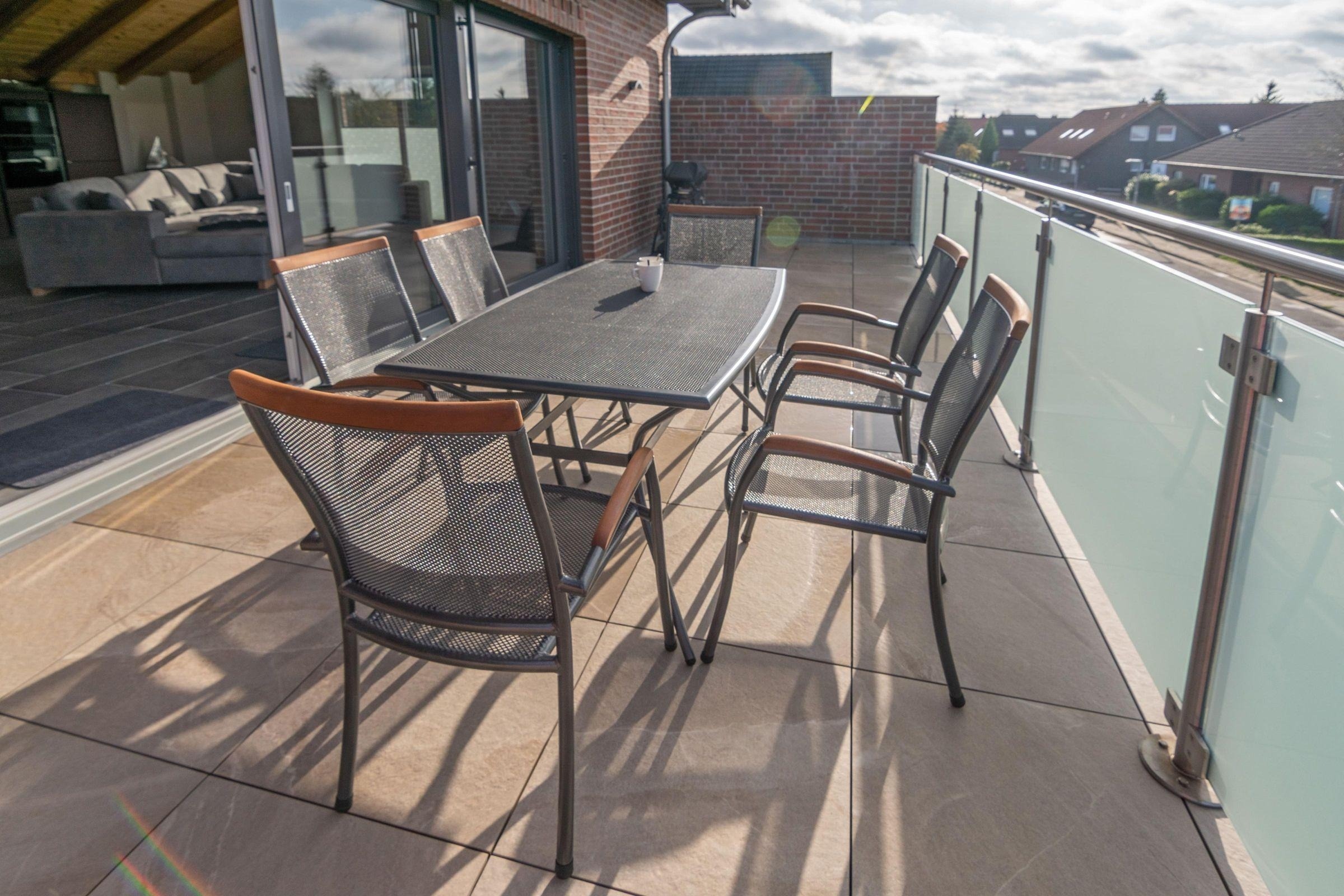 Das exklusive 5-Sterne Ferienhaus in Norddeich bietet einen attraktiven Außenbereich, der zum Entspannen und Verweilen einlädt. Gepflegte Gartenanlagen und eine großzügige Terrasse mit komfortablen Sitzmöglichkeiten ermöglichen Frühstück im Freien oder gemütliche Abende. Die Gäste profitieren von einem beheizten Pool, der zur gemeinschaftlichen Nutzung bereitsteht, ideal für erholsame Stunden und sportliche Aktivitäten. Private Stellplätze direkt am Haus sorgen für eine stressfreie Anreise. Die ruhige, naturnahe Lage des Ferienhauses ermöglicht zudem unvergessliche Spaziergänge und Radtouren. Eine perfekte Kombination aus Luxus und Erholung für bis zu 6 Personen, die den Außenbereich in vollen Zügen genießen möchten. Buchen Sie jetzt und erleben Sie unvergessliche Momente an der Nordsee!