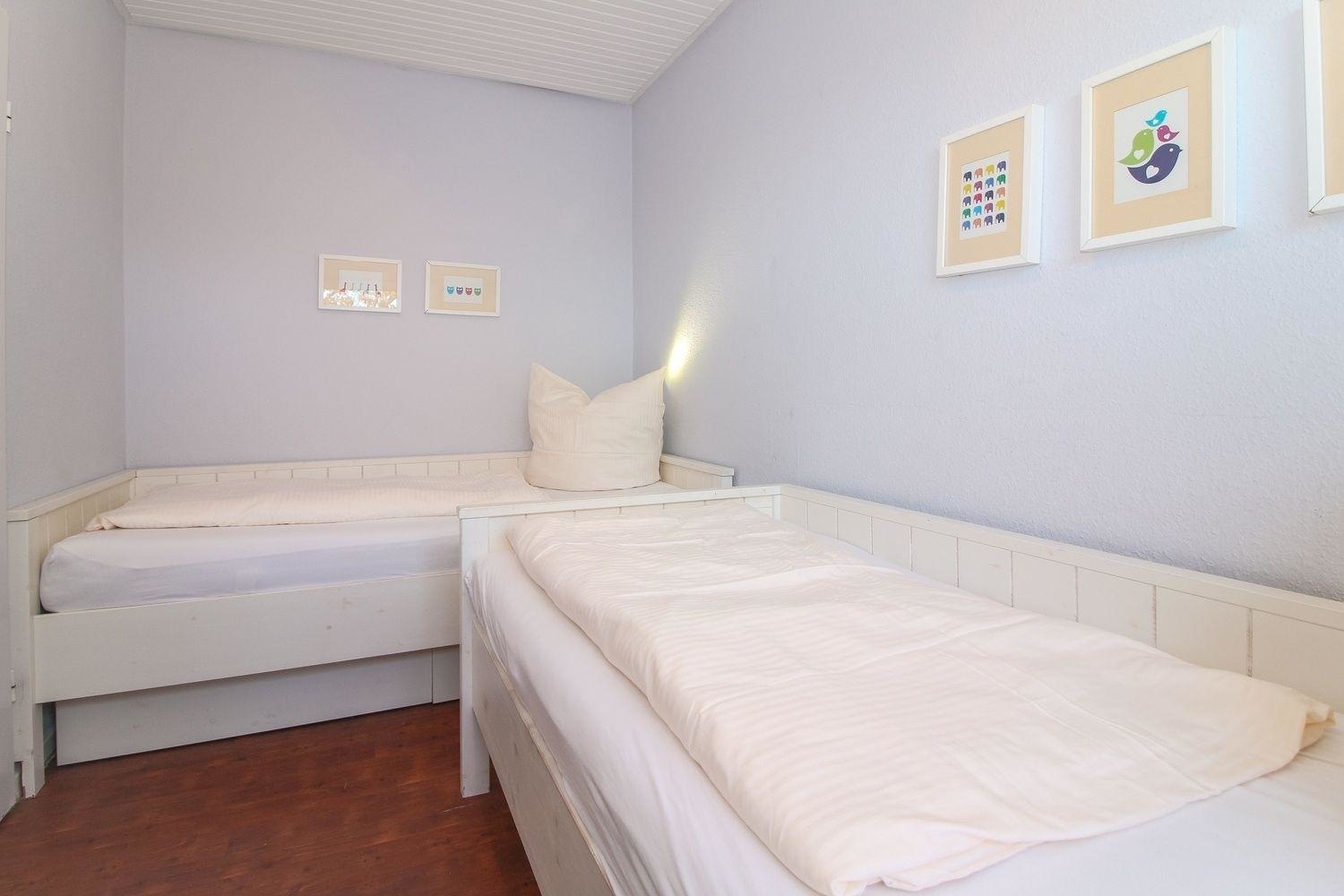 Die Schlafräume wurden mit einem Doppelbett und zwei Einzelbetten ausgestattet.