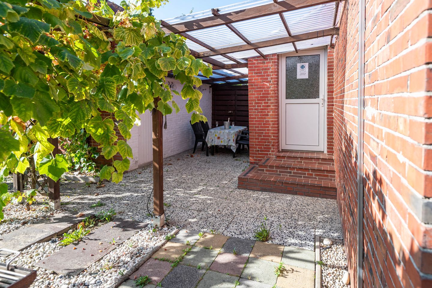 Im Außenbereich finden Sie eine überdachte Terrasse, die sich perfekt für entspannte Stunden im Freien eignet. Ein massives Nebengebäude bietet zusätzlichen Platz für Fahrräder und mehr. Eine weitere überdachte Terrasse mit Grillkamin lädt zu geselligen Grillabenden ein. Zusätzlich steht Ihnen ein Holzkohlegrill zur Verfügung.