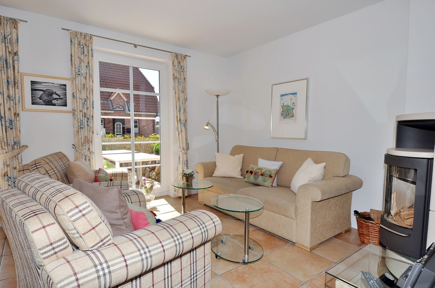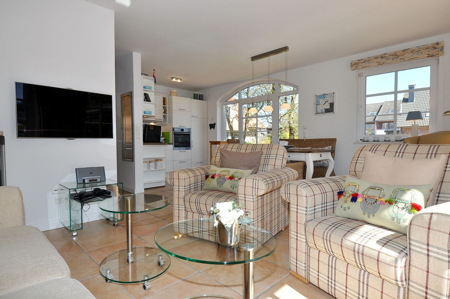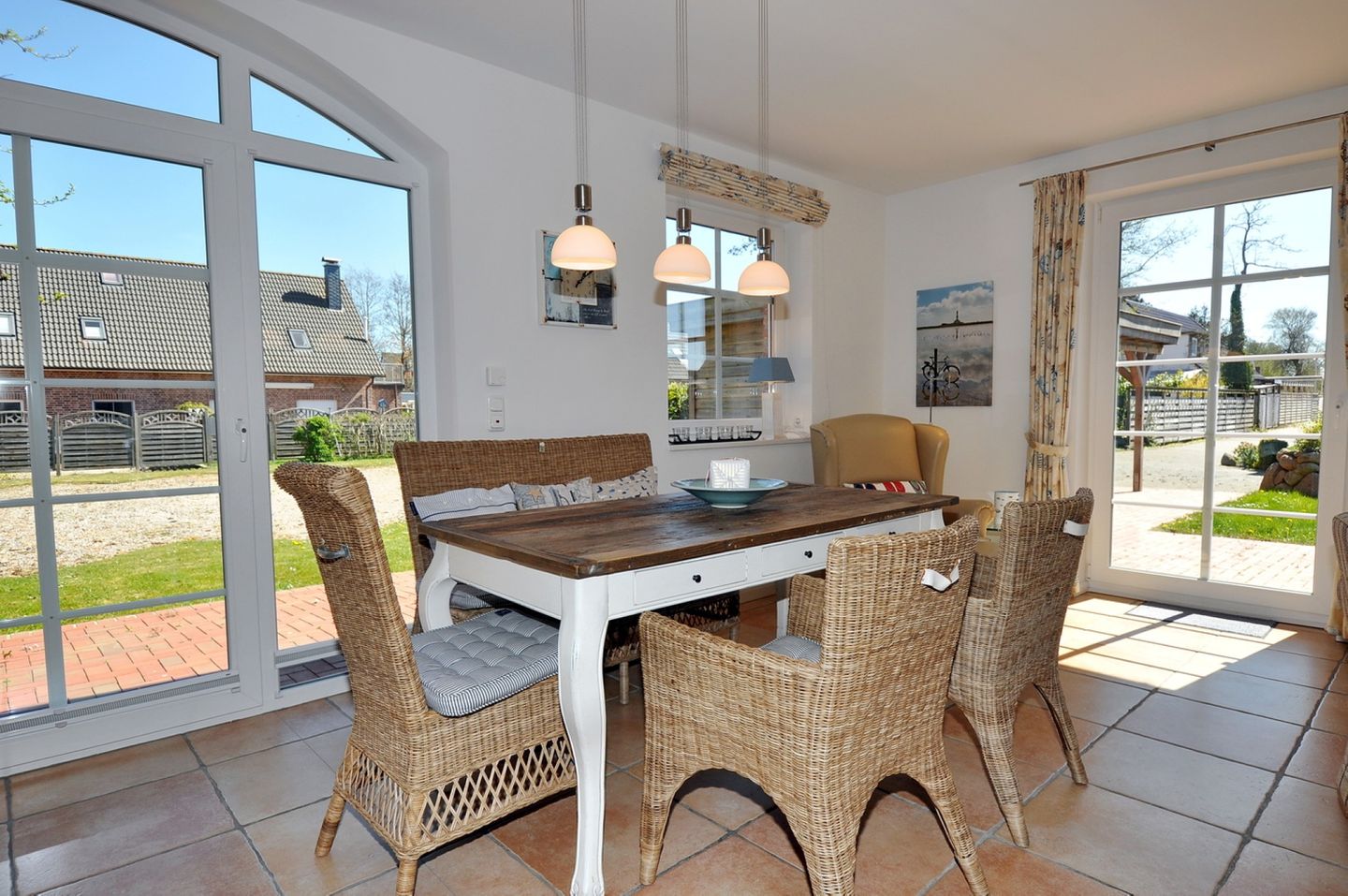 Die Haushälfte verfügt insgesamt über 2 Terrassen, die mit Gartenmöbeln, Sonnenschirm und einem Strandkorb ausgestattet sind, zudem steht Ihnen ein Grill zur Verfügung. Die hochwertige Ausstattung der Küche lädt zum gemeinsamen Kochen ein.