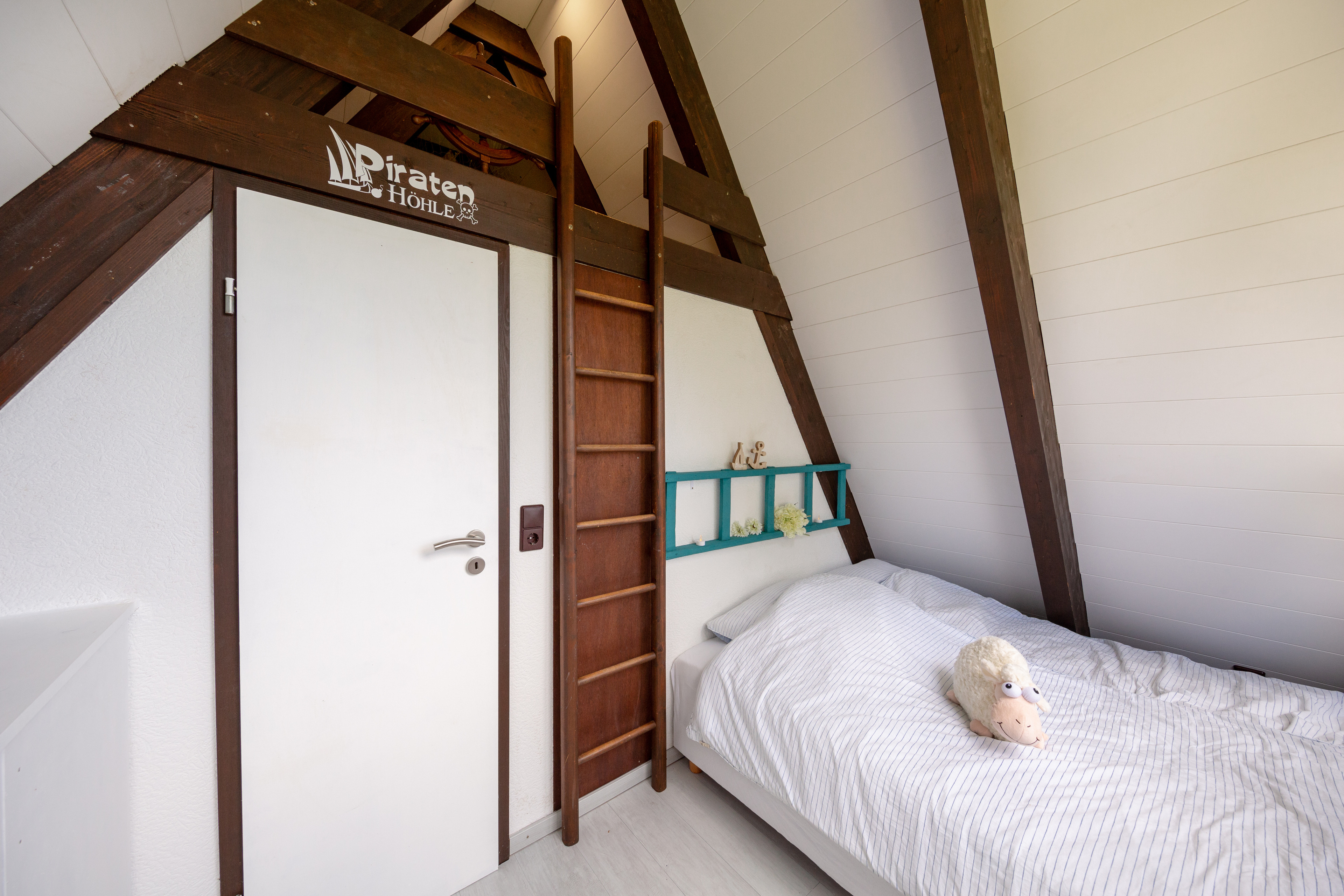 Ihre größeren Kinder werden es außerdem lieben in der gemtülichen Piratenhühle (Spitzboden über dem Kinderschlafzimmer – über eine Leiter erreichbar) zu spielen.