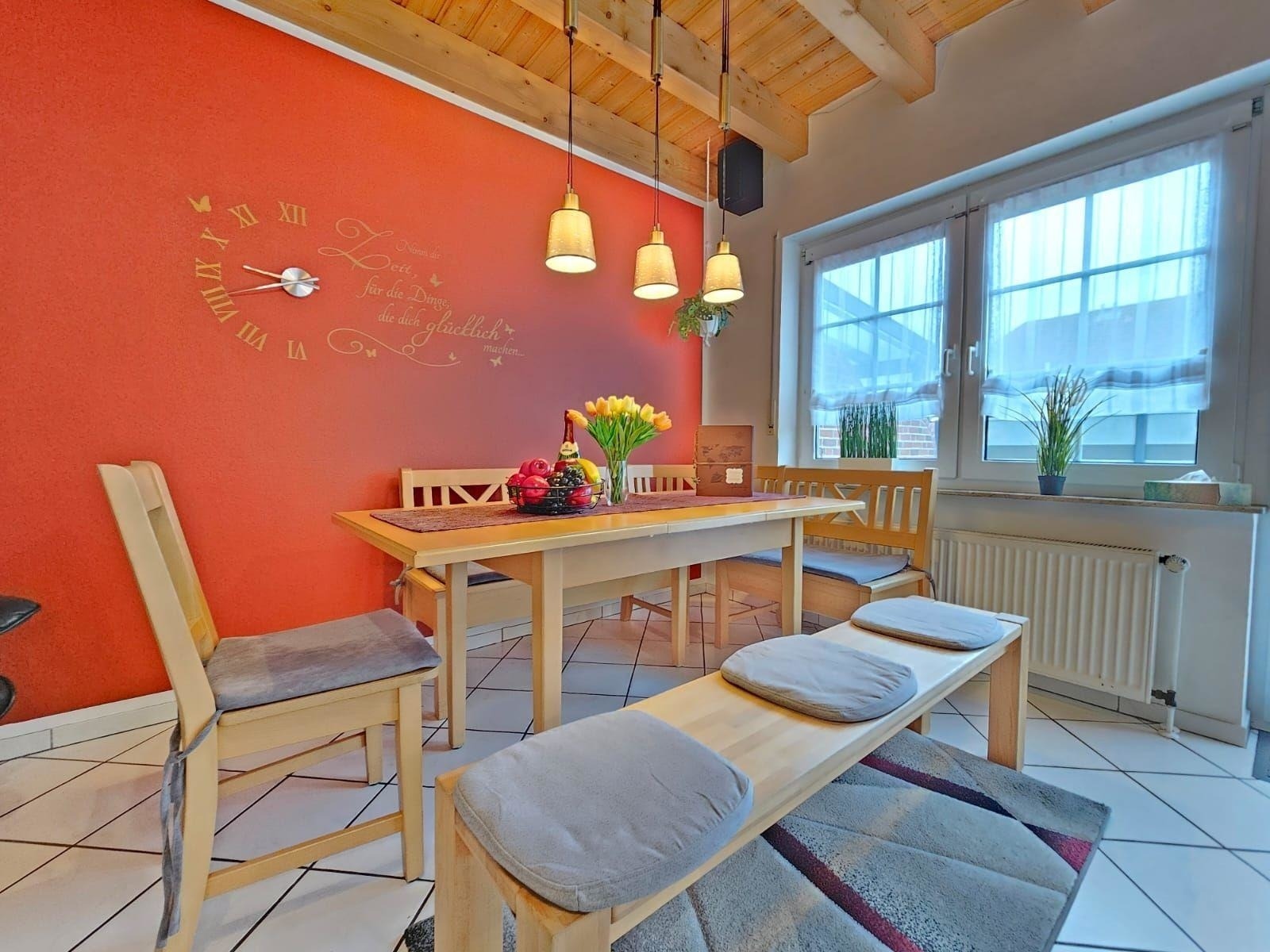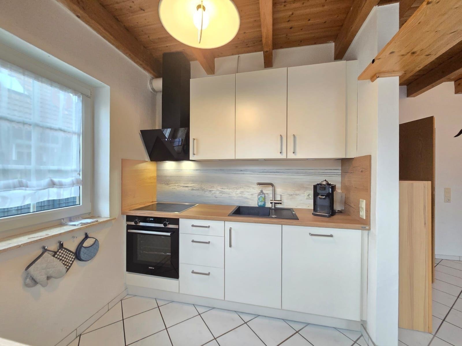 Diese großzügige Ferienwohnung bietet auf 3 Schlafzimmern Platz für Erholung und Entspannung. Ausgestattet mit zwei Doppelbetten und zwei Einzelbetten, ist sie ideal für Familien oder Gruppen. Die offene Küche ist ein Highlight und verfügt über alle modernen Annehmlichkeiten, darunter einen Geschirrspüler, Elektro-/Gasherd, Backofen, Mikrowelle und Kühlschrank. Eine Kaffeemaschine und ein Toaster stehen ebenfalls bereit.