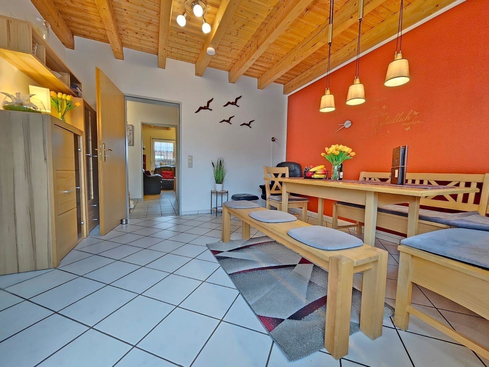 Die Ferienwohnung bietet einen einladenden Grillbereich, ideal für gesellige Abende im Freien. Ein Holzkohlegrill steht zur Verfügung, um die kulinarischen Fähigkeiten zu entfalten. Genießen Sie entspannte Stunden auf der Terrasse und lassen Sie den Alltag hinter sich. Die geschmackvolle Ausstattung der Wohnung garantiert zusätzlichen Komfort und Wohlbefinden während des Aufenthalts.