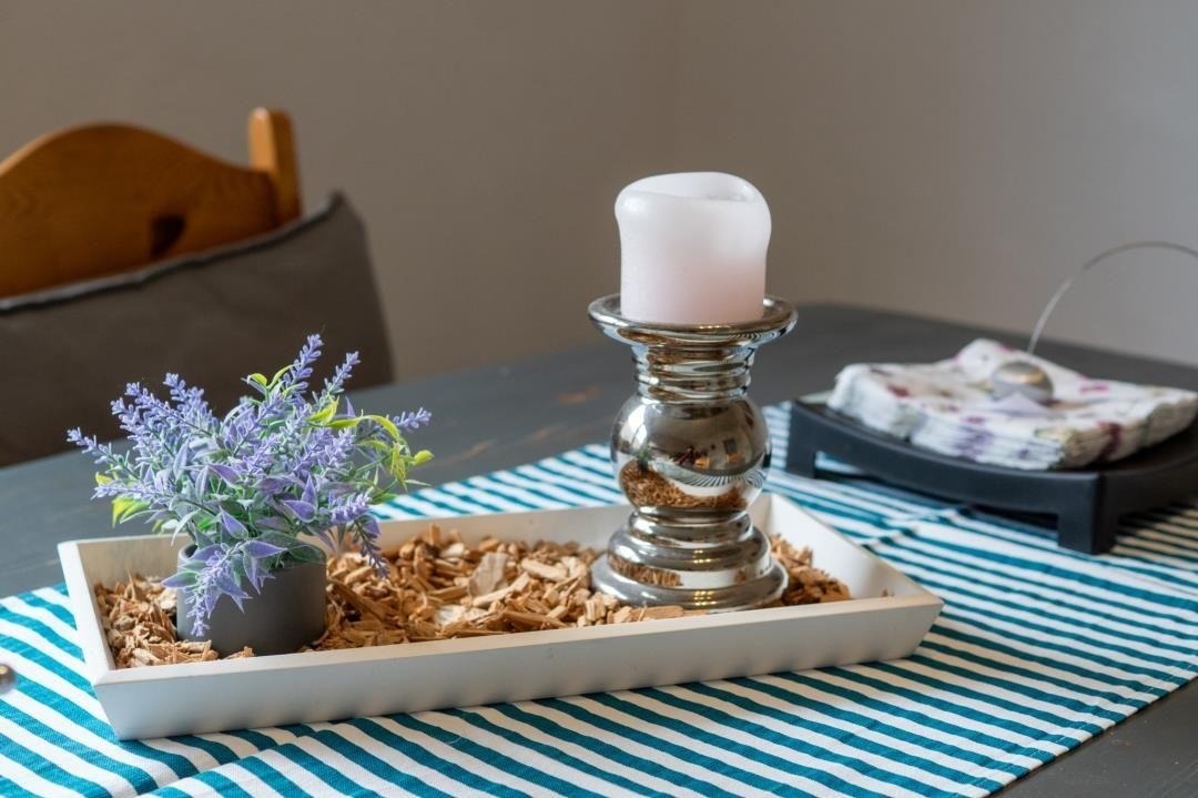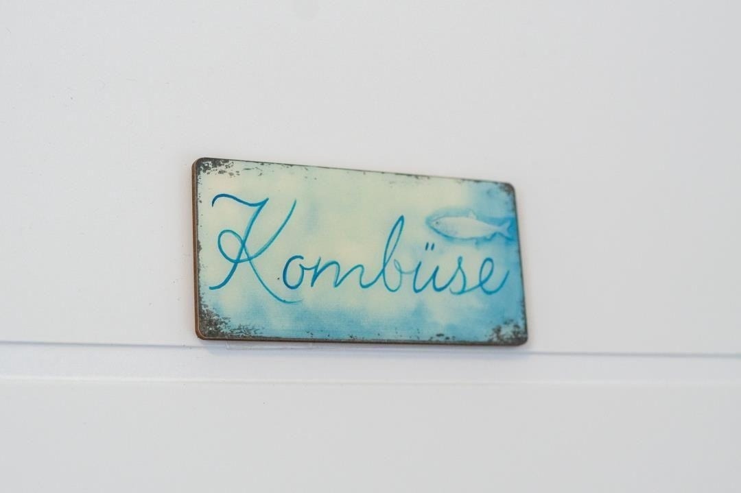 Im Erdgeschoss befindet sich die große Wohnküche, die mit ihrer modernen Ausstattung zum Mittelpunkt des Hauses wird. Die vollständig eingerichtete Küche bietet mit Backofen, Herd, Kaffeemaschine, Mikrowelle, Wasserkocher und reichlich Stauraum alles, was man für die Selbstversorgung im Urlaub benötigt. Der großzügige Esstisch lädt zu gemeinsamen Mahlzeiten ein und bietet die ideale Umgebung für gemütliche Abende. Große Fenster lassen viel Tageslicht in den Raum und unterstreichen die warme, freundliche Atmosphäre des Hauses. Die ausgewählte Dekoration und der maritime Stil schaffen ein Wohlfühlambiente, das Gäste sofort ankommen lässt. So wird das Ferienhaus Westwind schnell zu einem Zuhause auf Zeit.