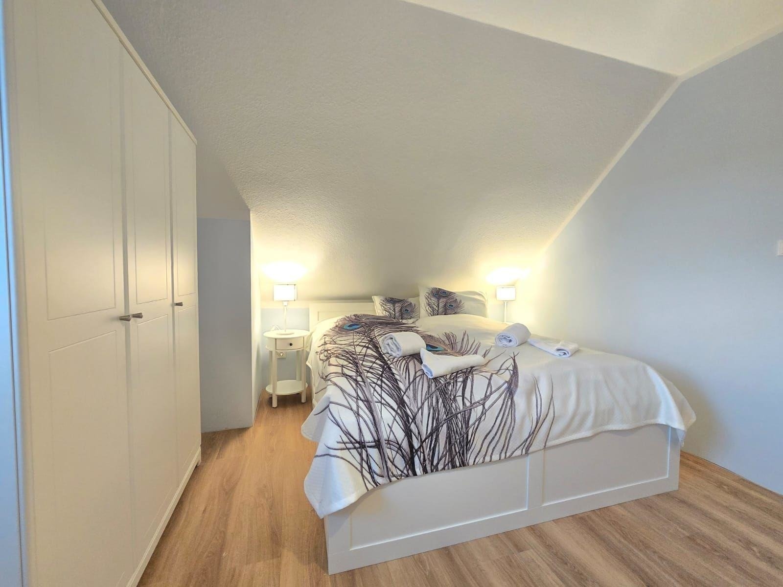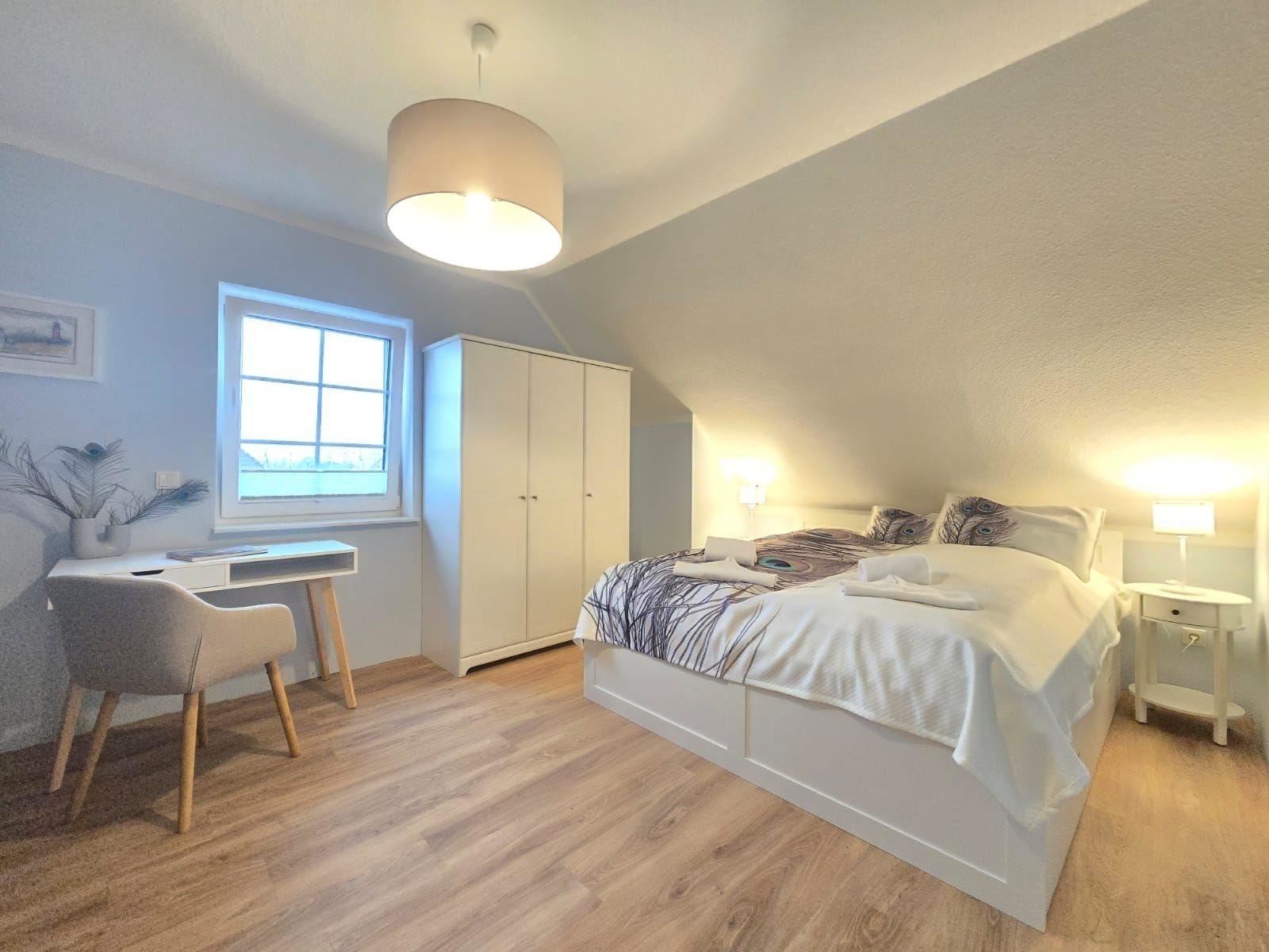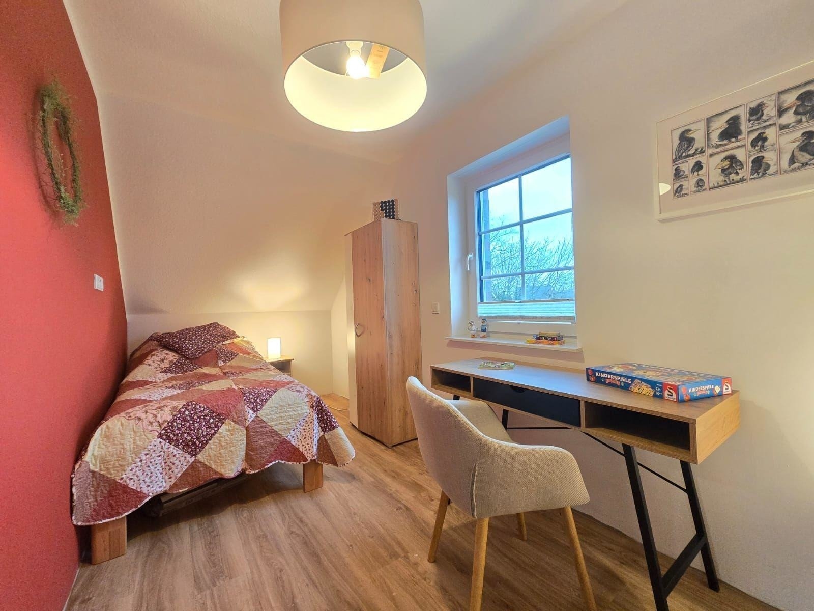 Die Ferienwohnung bietet barrierefreien Zugang und verfügt über einen eigenen Parkplatz. Ein komfortabler Arbeitsplatz ermöglicht produktives Arbeiten, während der Blick auf den gepflegten Garten für Entspannung sorgt. Ideal für Reisende, die Wert auf Komfort und Ruhe legen. Ungeeignet für Gäste, die eine weitere Ausstattung benötigen, da keine zusätzlichen Angebote vorhanden sind.