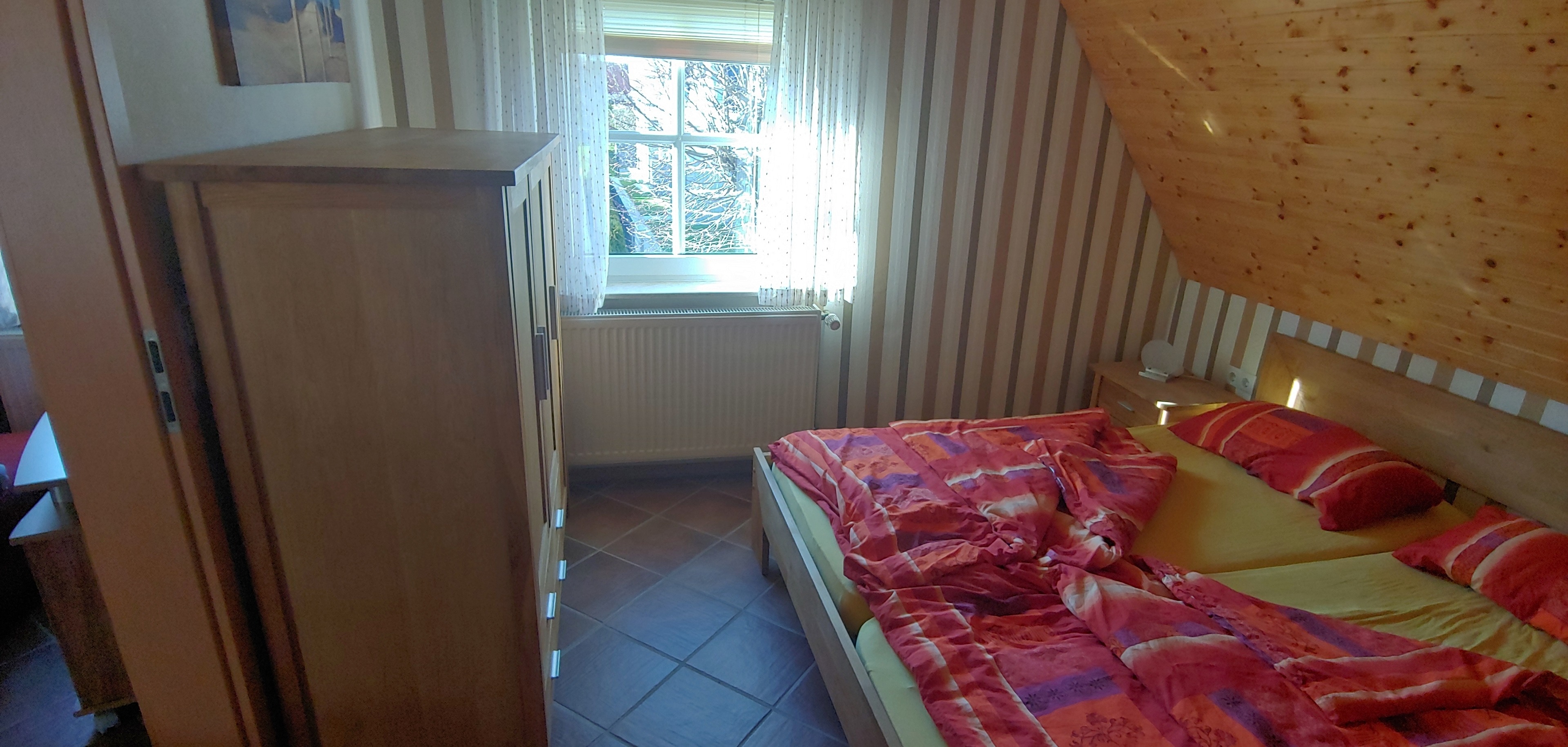 Im EG = 1 Doppelbett 1.80 x 2.00 m , 1 Bett 1.40 x 2.00 m darüber ein Stockbett 0.90 x 2.00 m =(max. 5 Pers.)