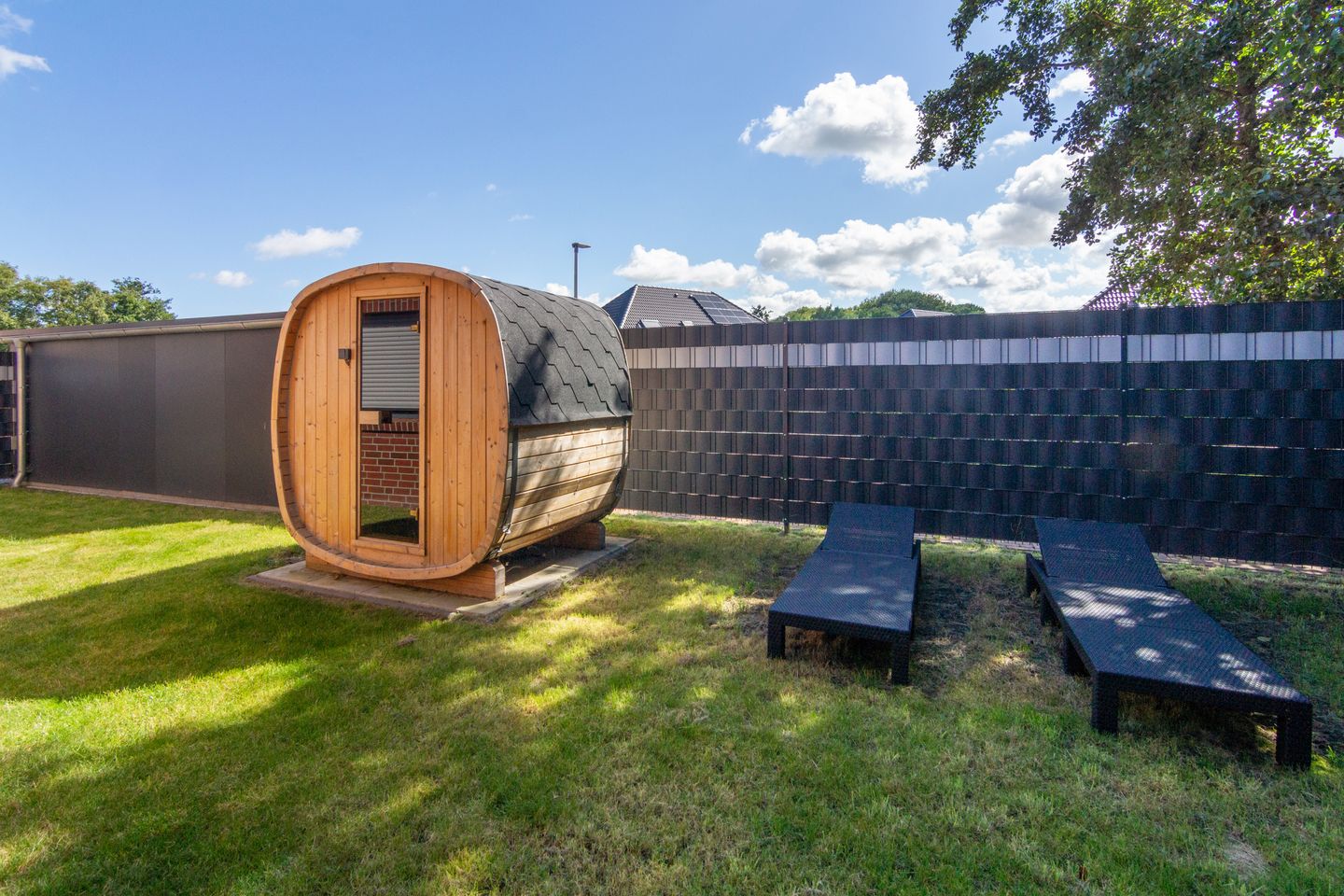 Zu den weiteren Annehmlichkeiten der Unterkunft zählen eine Fußbodenheizung, Rauchmelder, der Blick in den Garten und private Parkmöglichkeiten vor dem Haus. Das abgeschlossene Grundstück sorgt für zusätzliche Sicherheit und Privatsphäre, damit Sie und Ihre Familie ungestört entspannen können.