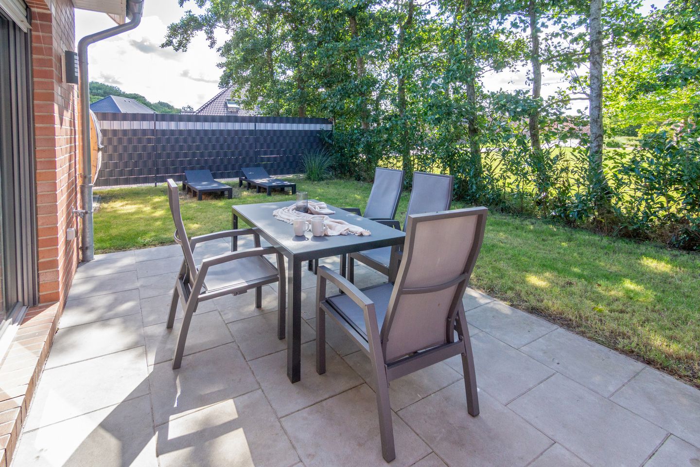 Ein besonderes Highlight der Seeperle ist die private Terrasse, die mit Gartenmöbeln und Sonnenliegen ausgestattet ist. Hier können Sie entspannte Stunden im Freien genießen und den Blick auf den liebevoll gestalteten Garten mit Liegewiese und Grillmöglichkeit genießen.