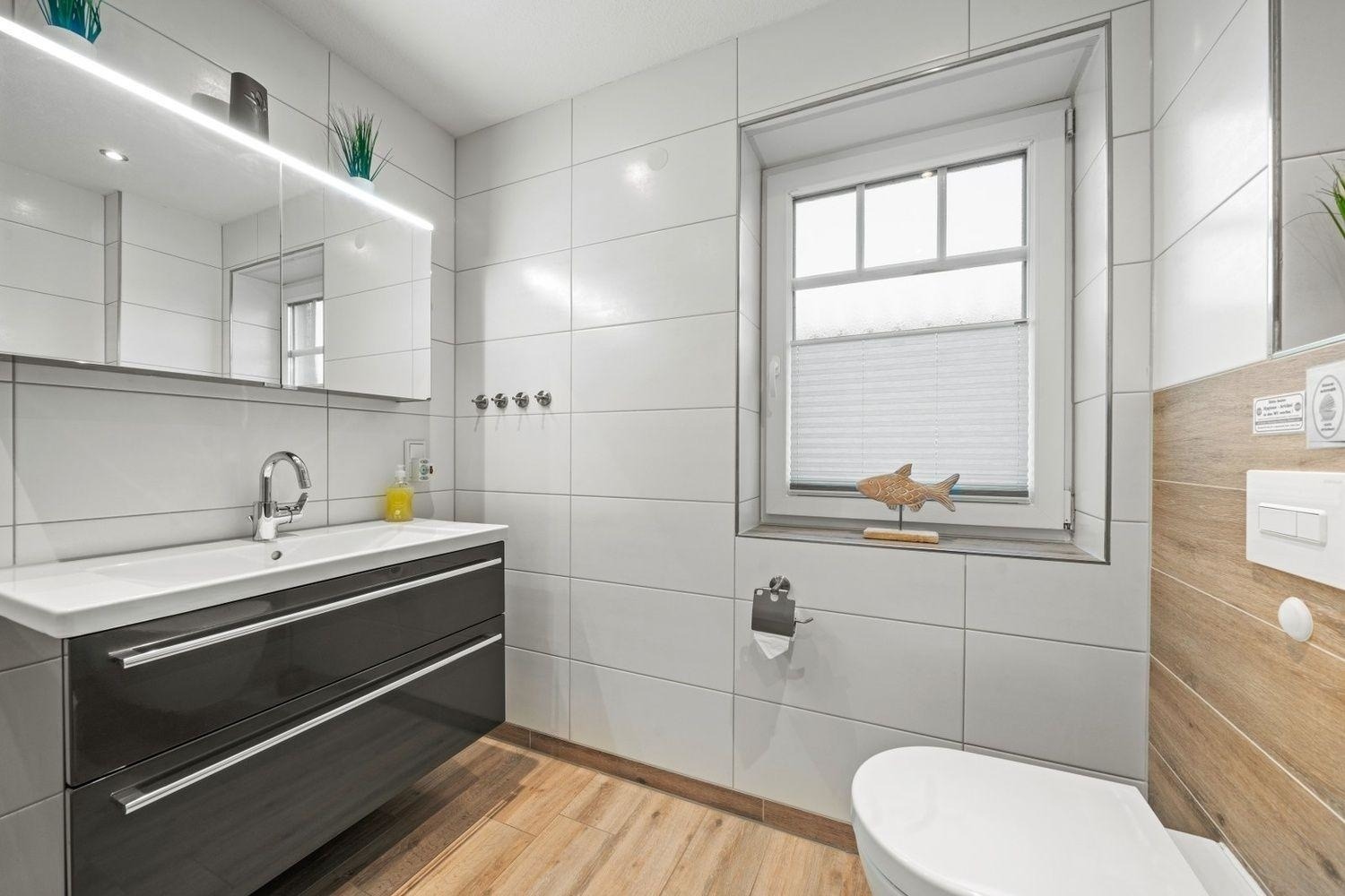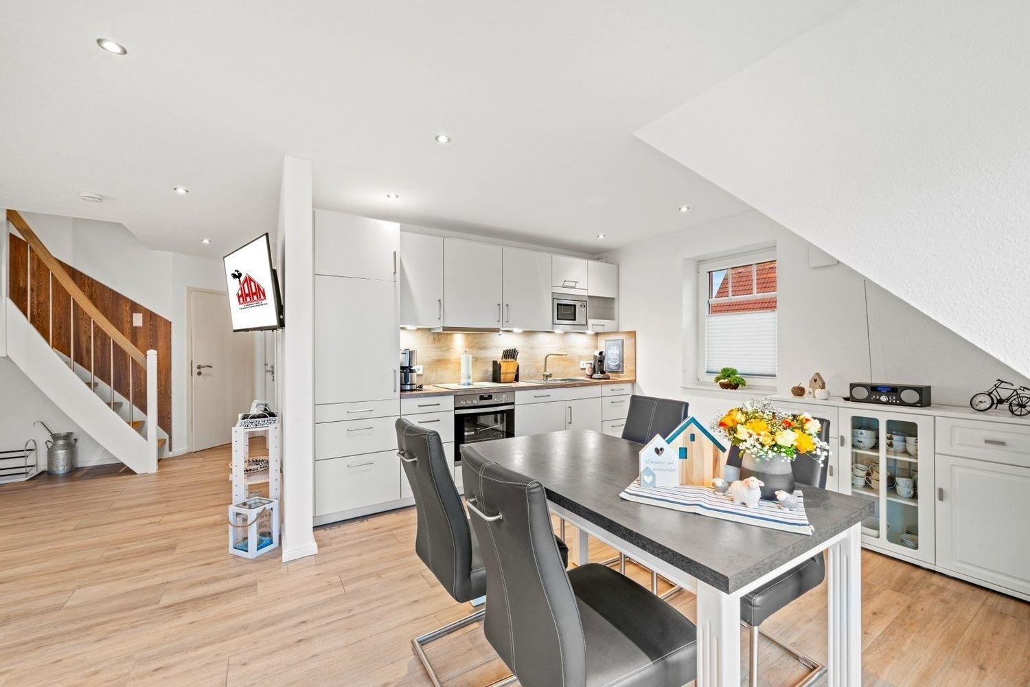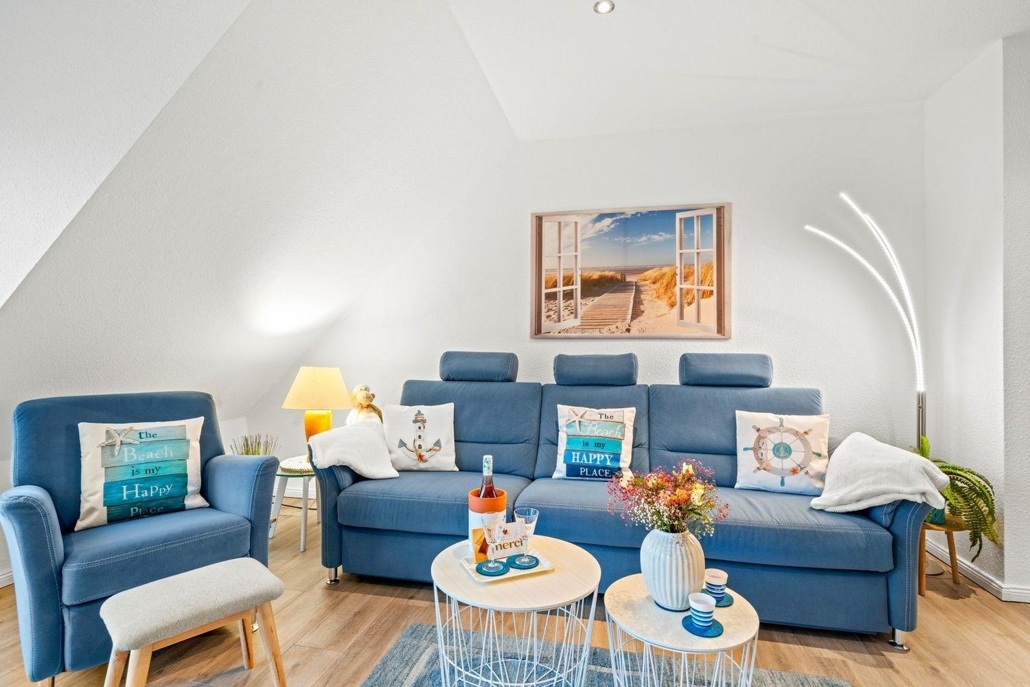 Die Wohnung ist modern eingerichtet. Sie hat Fußbodenheizung und in allen Räumen in die Decke eingelassene Spots zur Beleuchtung. Durch die hochwertige und harmonisch aufeinander abgestimmte Einrichtung werden Sie sich in der Wohnung Am Nordmeerstrand wohlfühlen.