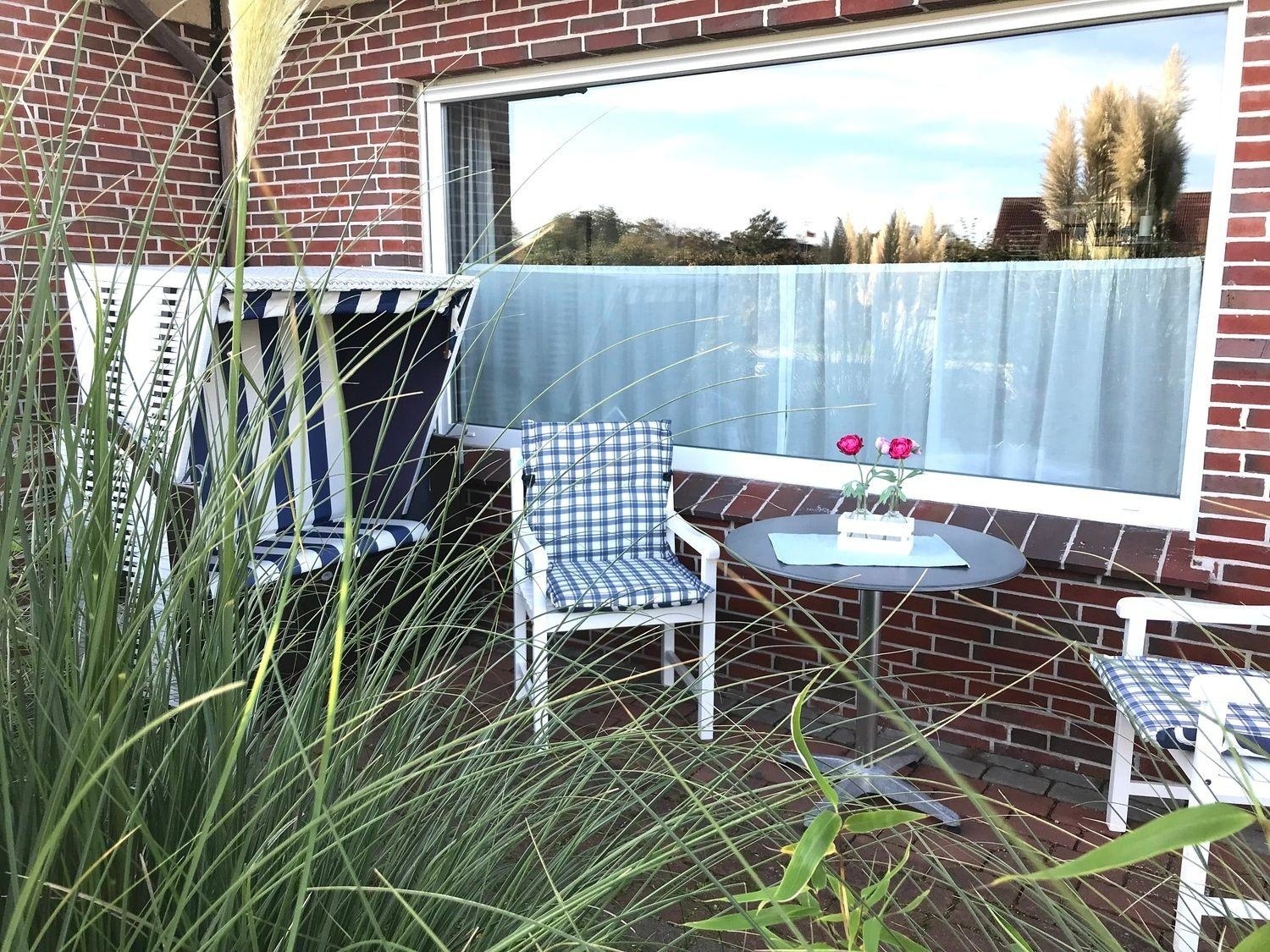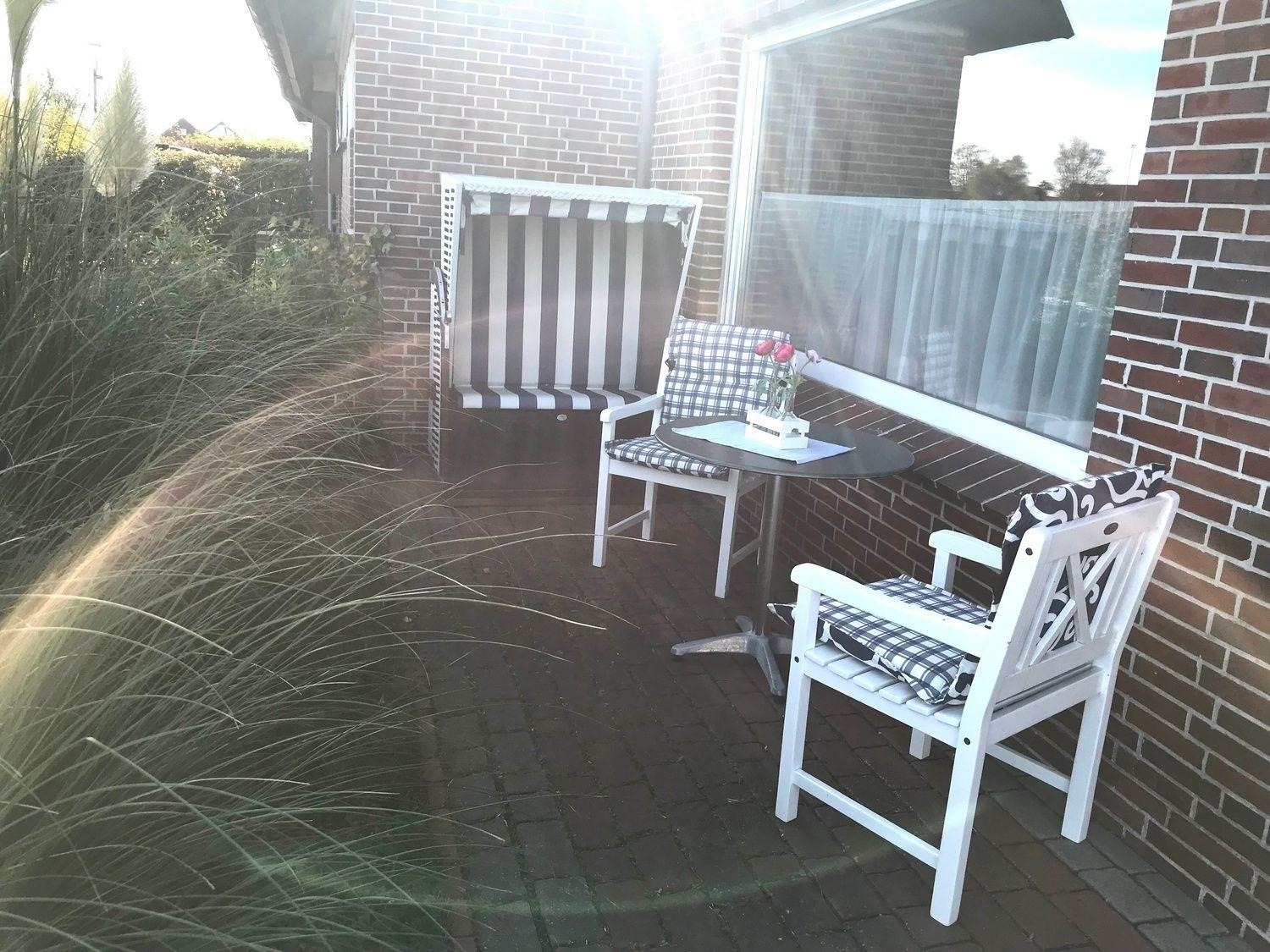 Die Anna Nordsee verfügt über eine Terrasse im Vorgarten. Hier können Sie die Sonne genießen und einfach mal die Nordseeluft auf sich wirken lassen. Wenn Sie die Sonne nicht mehr sehen können, können Sie die Terrasse durch den Sonnenschirm schattiger machen. Ein kleiner Außenabstellraum(gemeinschaftl. Nutzung) gehört ebenfalls mit zur Wohnung und befindet sich direkt am Haus.
