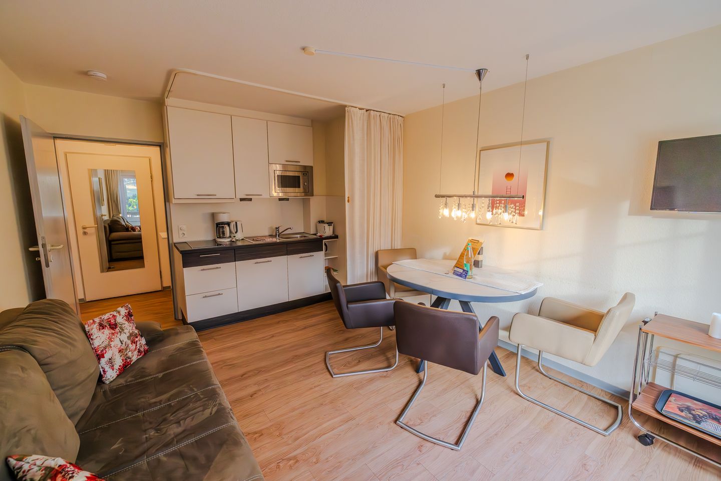 Die Wohnung bietet alle notwendigen Annehmlichkeiten wie WLAN, TV und eine voll ausgestattete Küche mit Mikrowelle, Kühlschrank und Kaffeemaschine, damit es Ihnen an nichts fehlt.