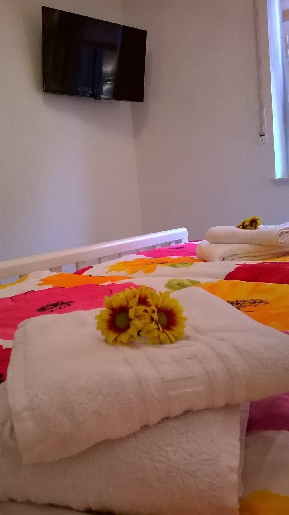 Zwei getrennte Schlafzimmer bieten ausreichend Platz für insgesamt 4 Personen: Ein Schlafzimmer ist mit einem Doppelbett (2,00 m x 1,80 m), einem geräumigen Schrank, Nachtkonsolen und einem wandhängenden LCD-Fernseher ausgestattet.