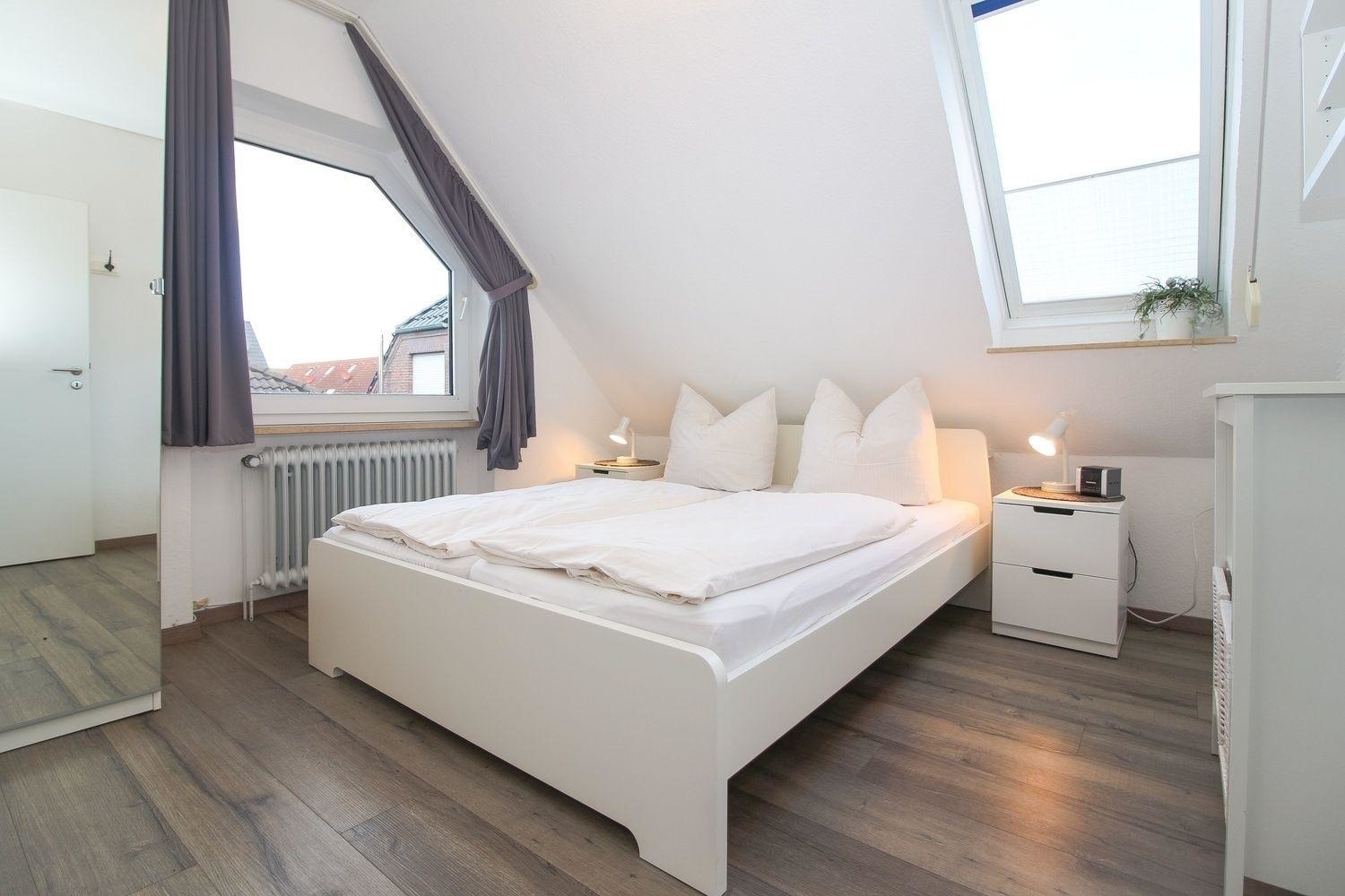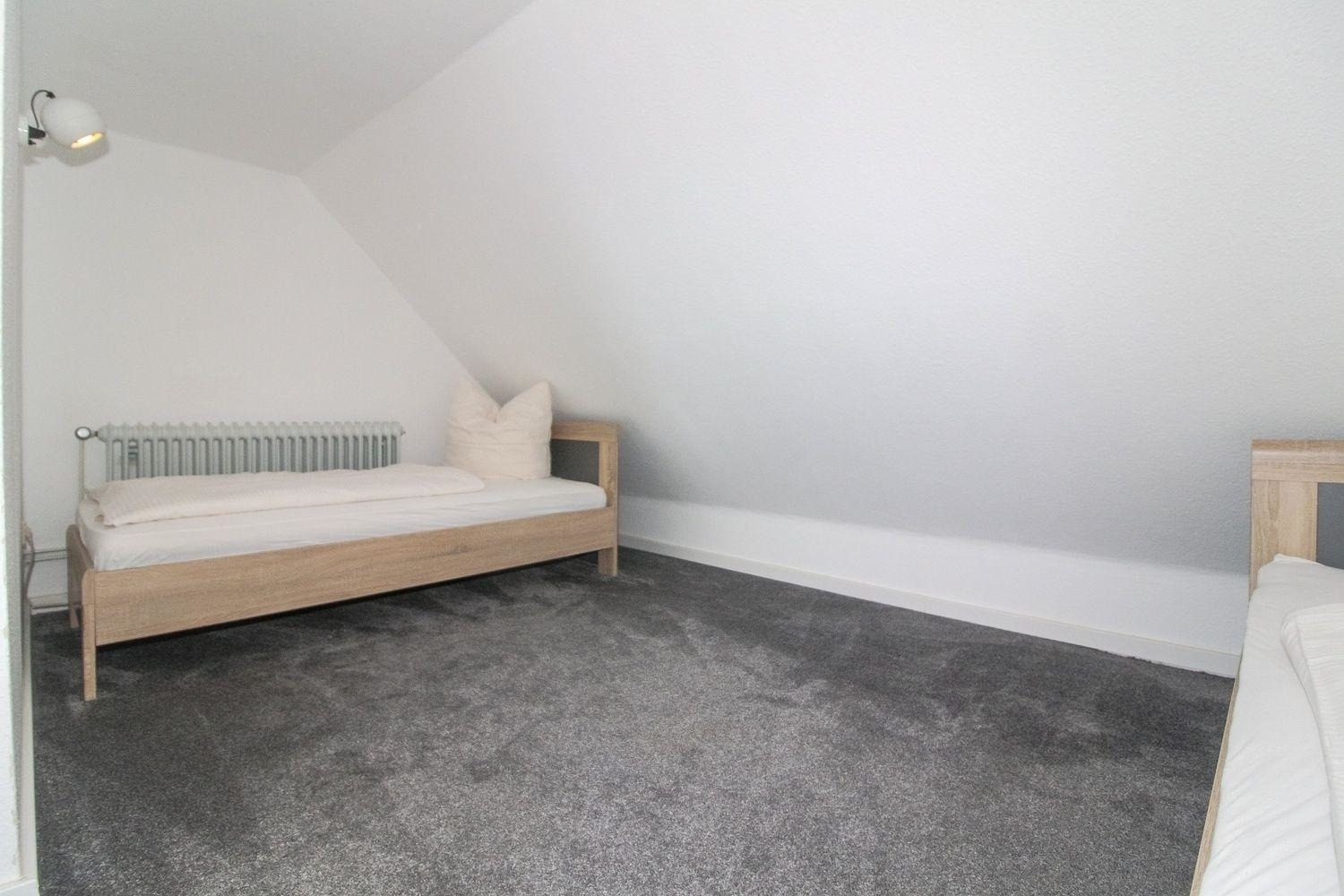 Im Obergeschoss der Wohnung befindet sich das zweite, großzügige Schlafzimmer mit zwei Einzelbetten.