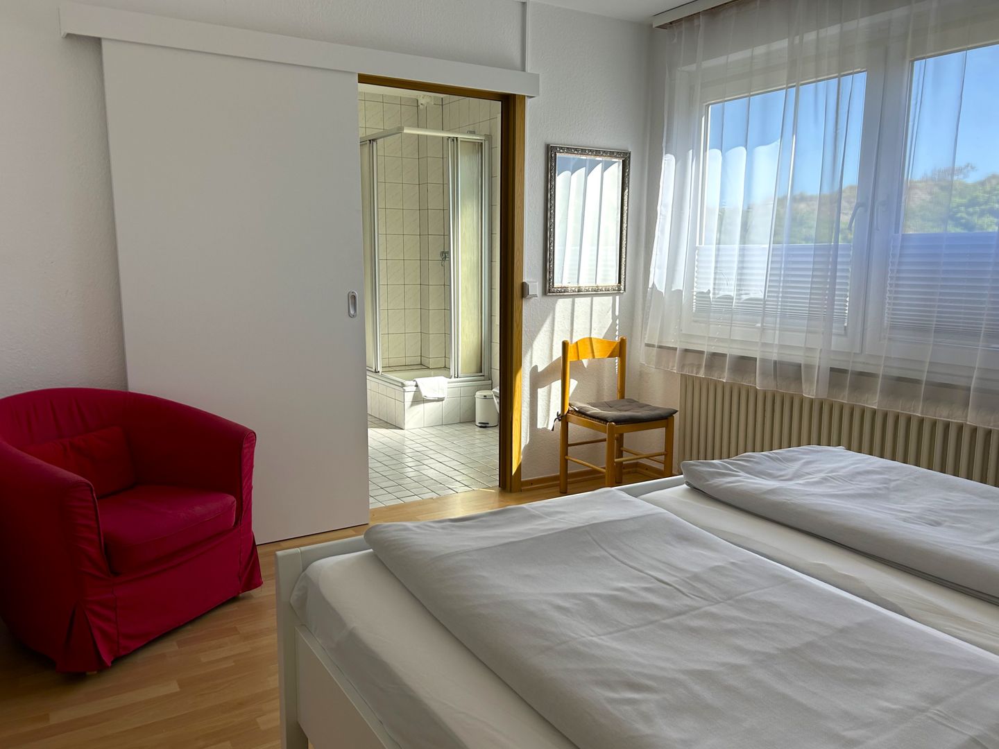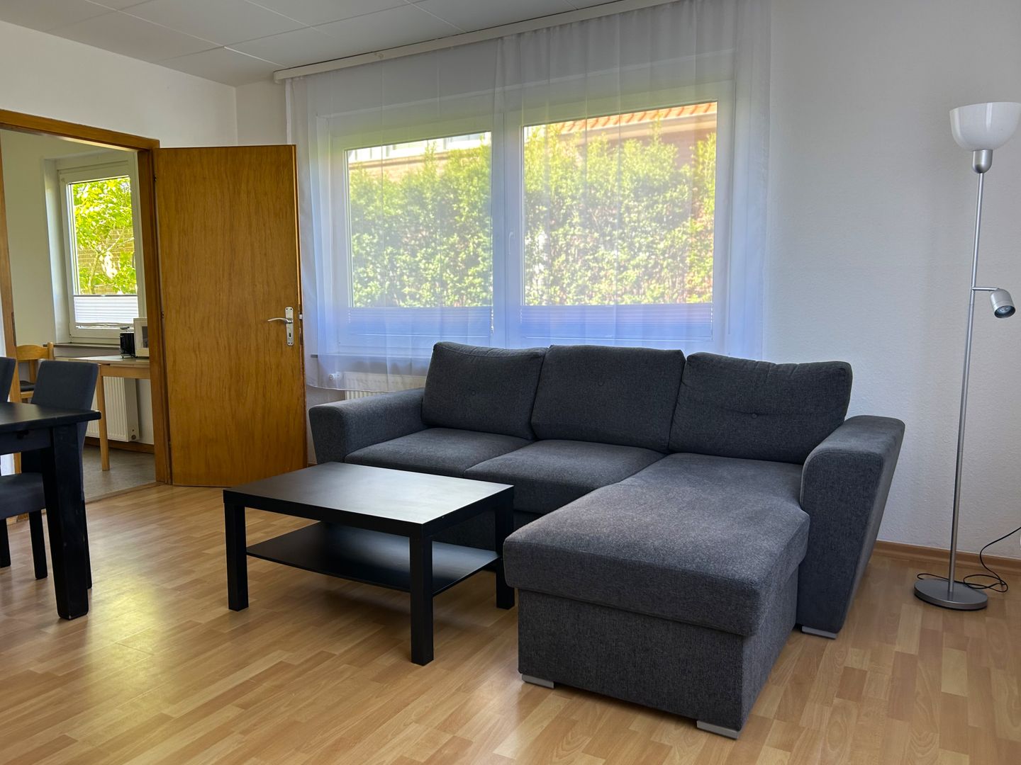 Das 2-Raum-Appartement im Erdgeschoss verfügt über ein separates Schlafzimmer mit Doppelbett, einen Wohn-/Schlafraum (Schlafsofa), eine separate Küchenzeile