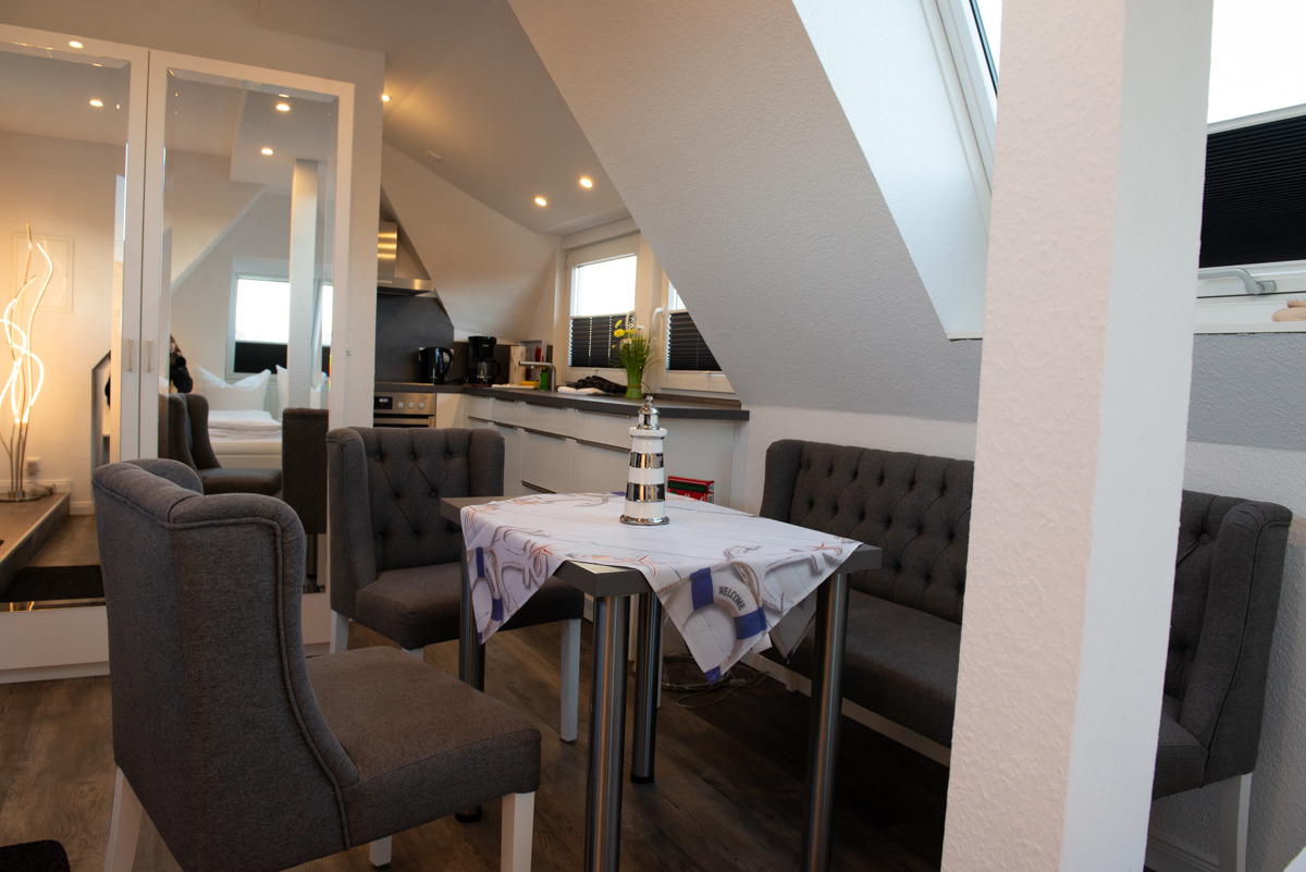 Ein besonderes Highlight ist die großzügige, möblierte Dachterrasse, die Ihnen einen fantastischen Blick über Norddeich bietet – perfekt, um den Tag mit einer Tasse Kaffee oder einem Glas Wein ausklingen zu lassen.