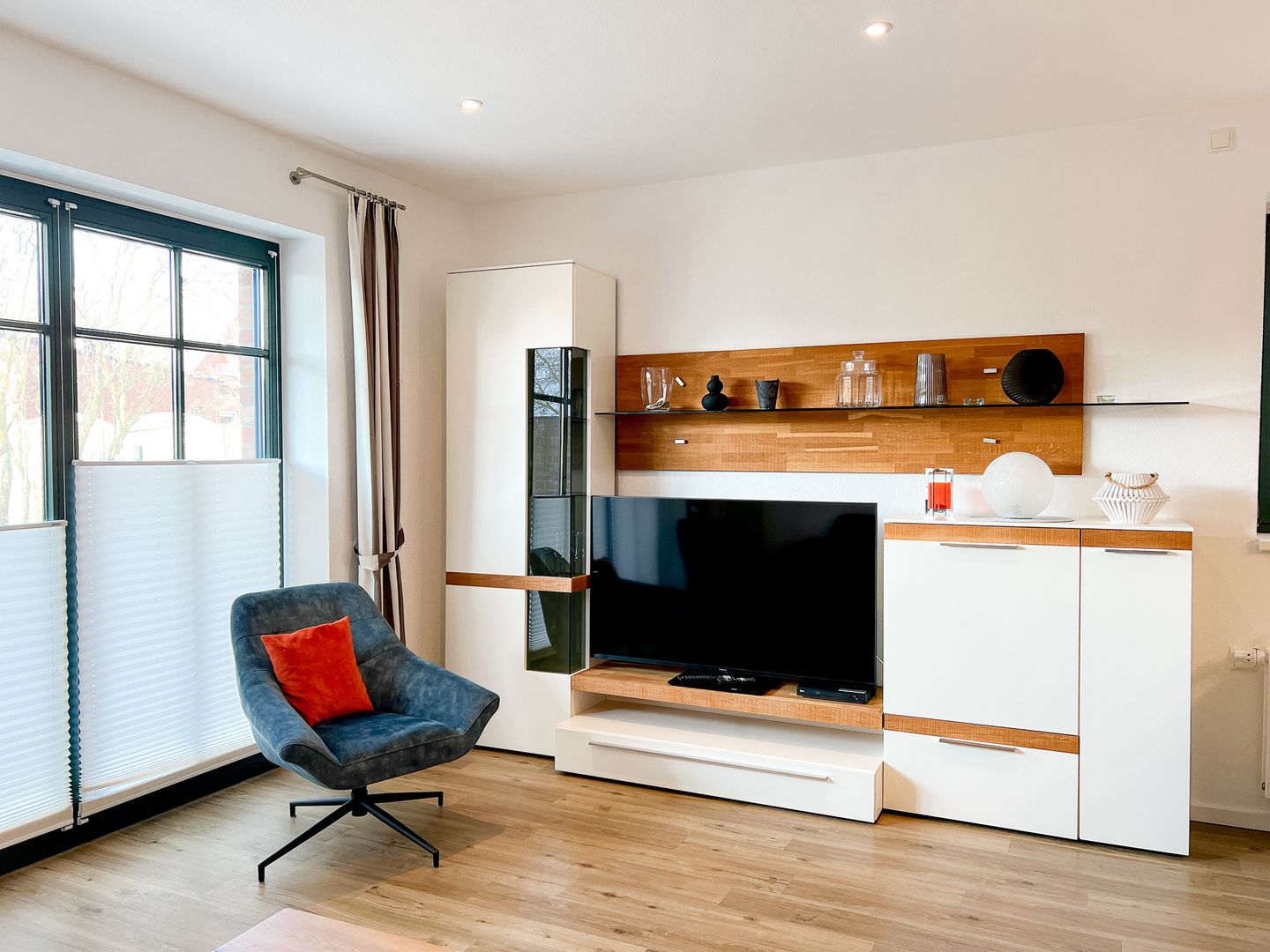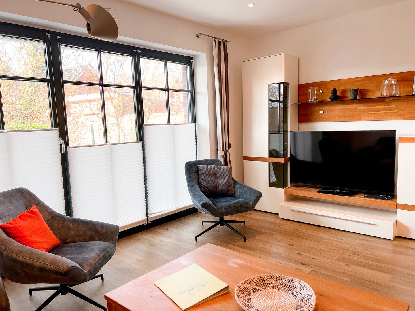 Bei schönem Wetter lädt die Terrasse sowie der Balkon dazu ein, die frische Nordseeluft zu genießen. Gartenmöbel stehen bereit, sodass Sie die Ruhe und den Blick auf den Garten in vollen Zügen auskosten können. Zudem ist ein Strandkorb am Strand inbegriffen, was bedeutet, dass Sie einen perfekten Platz für entspannte Stunden am Wasser haben.