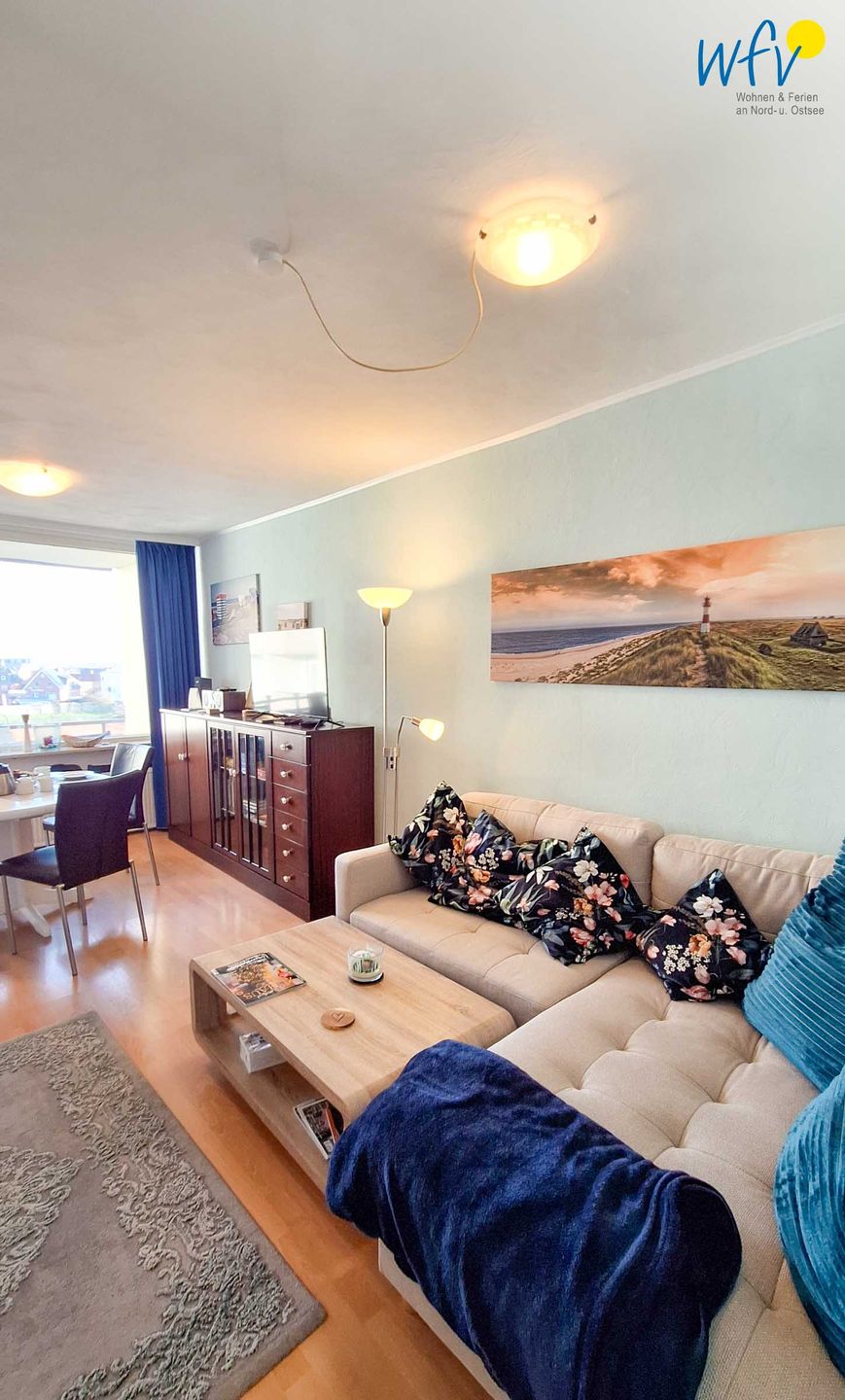 Für gemütliche Stunden am Abend stehen Ihnen im Wohnraum der Ferienwohnung ein moderner Flachbildfernseher sowie Gesellschaftsspiele und Bücher zur Verfügung. Oder Sie lassen den Urlaubstag auf dem möblierten Balkon ausklingen: Hier ganz in Ruhe ein Glas Wein zu trinken und die Abendstunden auf Borkum zu genießen, ist ein traumhaftes Urlaubsgefühl!