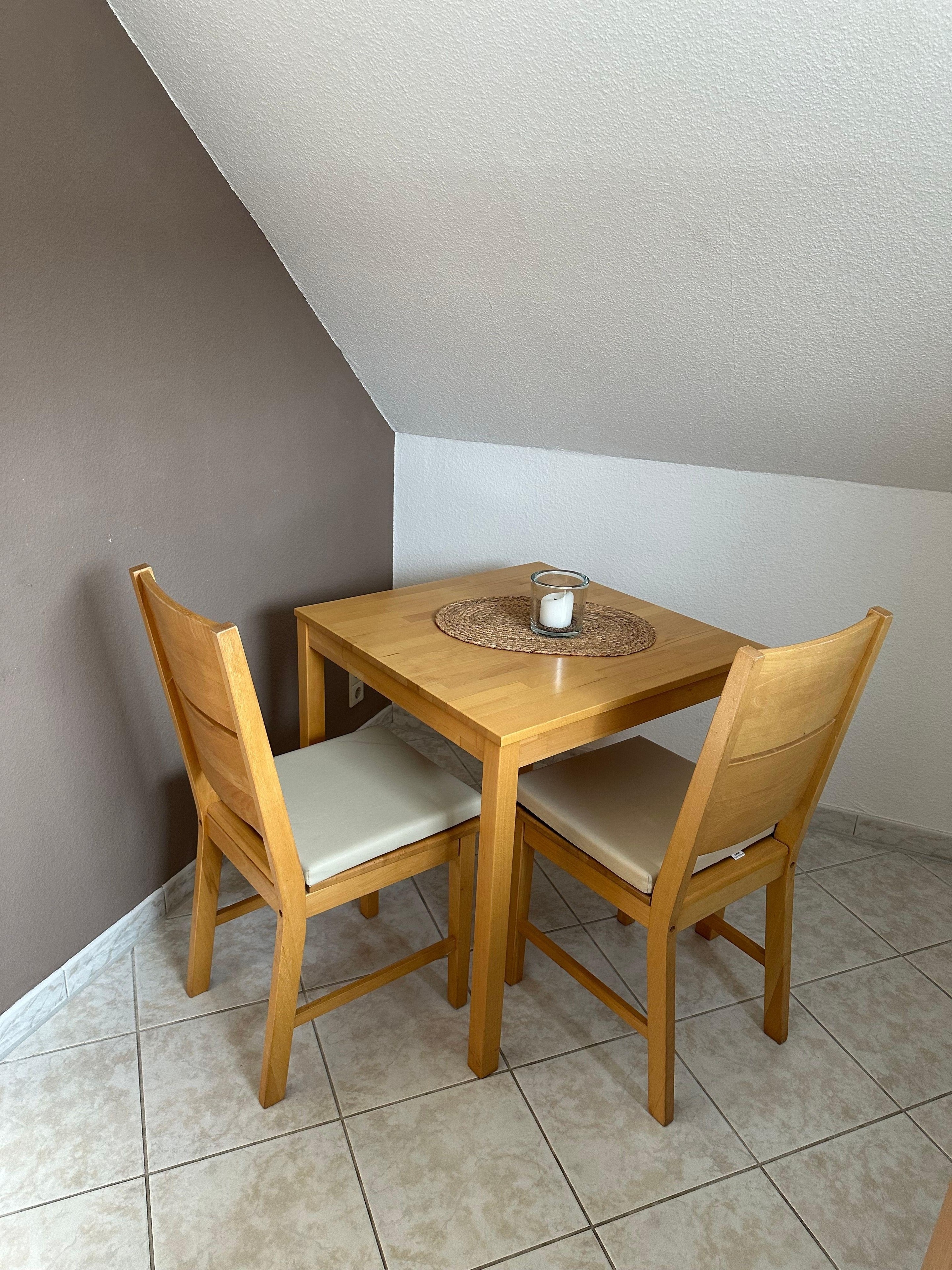 Im Wohnzimmer finden Sie, neben einer komfortablen Sitzecke mit TV, einen Esstisch mit Platz für 4 Personen vor.