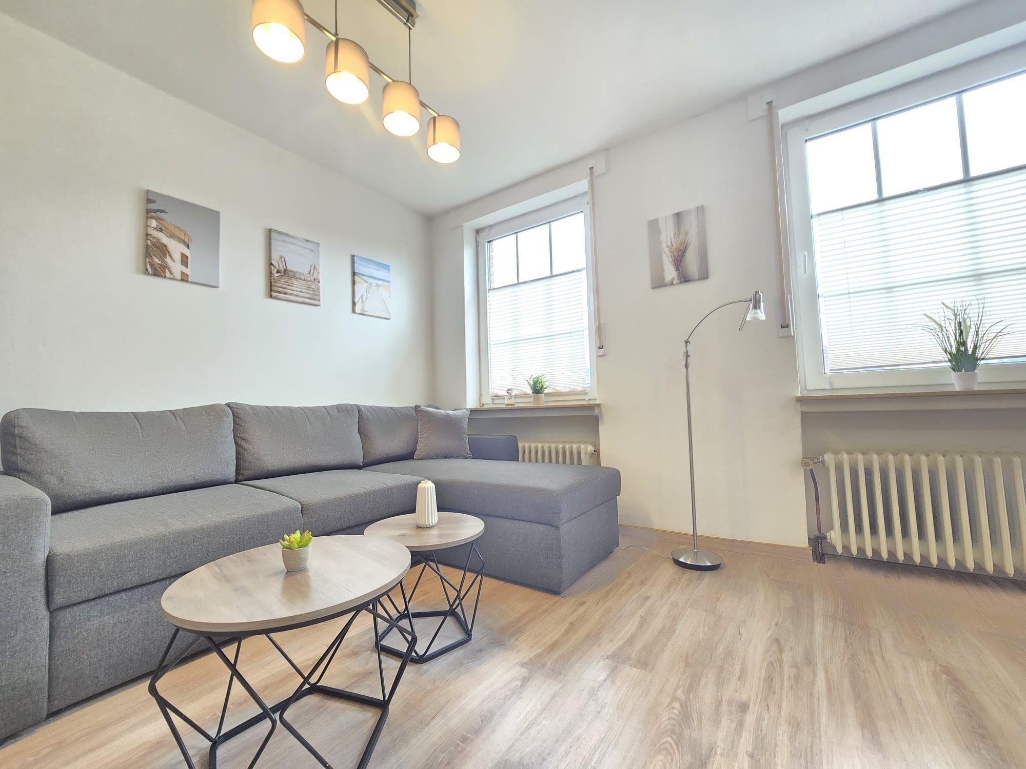 Diese Ferienwohnung bietet eine moderne und komfortable Ausstattung für einen angenehmen Aufenthalt. Die offene Küche ist mit einem Elektro-/Gasherd, Backofen, Mikrowelle und Kühlschrank ausgestattet und ermöglicht die Zubereitung köstlicher Mahlzeiten. Für die kleinen Gäste steht ein Kinderhochstuhl bereit. Das Wohnschlafzimmer bietet ein Schlafsofa sowie einen Esstisch, an dem gemütliche Abende verbracht werden können. Der Schlafbereich ist mit einem Doppelbett ausgestattet und ein Badezimmer mit Fenster und Duschbad sorgt für zusätzlichen Komfort. Die Wohnung ist allergikergeeignet und verfügt über WLAN, TV sowie einer HiFi-Anlage für Unterhaltungszwecke. Praktische Annehmlichkeiten wie eine Waschmaschine, Wäschetrockner und ein Bügeleisen sind ebenfalls vorhanden. Ein Parkplatz steht zur Verfügung. Startersets mit Gewürzen, Seife und Reinigungsmitteln sorgen für einen stressfreien Beginn des Aufenthalts.