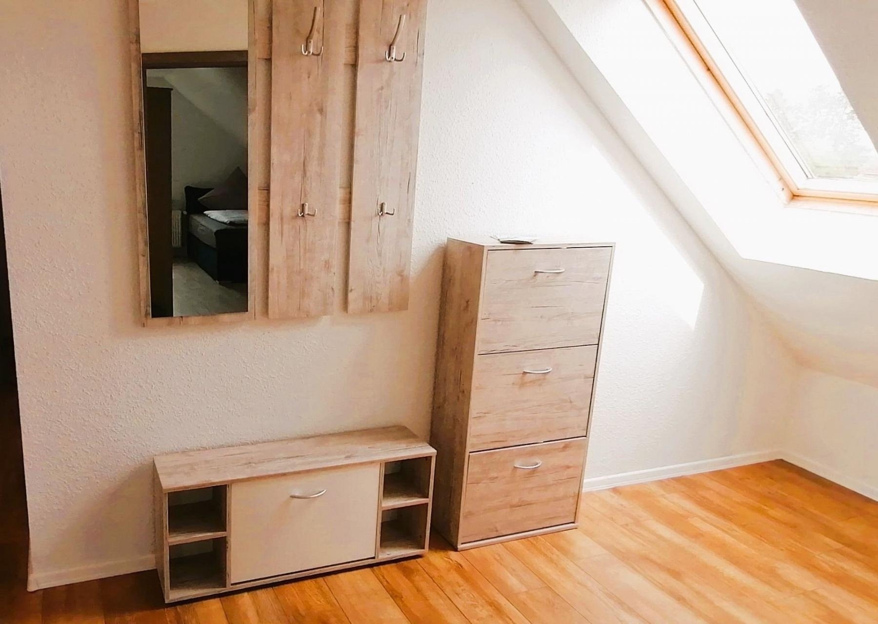Willkommen in der Ferienwohnung Lütje Moew, gelegen in Leezdorf in Ostfriesland an der Nordseeküste. Unser charmantes Feriendomizil bietet auf 80 Quadratmetern im 1. OG Platz für bis zu vier Gäste. Mit zwei Schlafzimmern, einer Küche, einem Badezimmer und Dachterrasse ist es der perfekte Ort für einen entspannten Urlaub.Die Wohnung besticht durch ihre gemütliche Ausstattung mit Venylboden und komfortablen Möbeln. Das Wohnzimmer lädt mit seinen bequemen Sofas und dem Fernseher zum Entspannen ein. Die Küche ist mit einer Tür schließbar und mit Spülmaschine, Mikrowelle, Wasserkocher, Kaffeemaschine und Backutensilien ausgestattet und bietet alles, was Sie für die Zubereitung von leckeren Mahlzeiten benötigen. Genießen Sie Ihr Frühstück oder einen gemütlichen Abend auf der Dachterrasse mit Blick auf den wunderschönen Garten oder in die Natur. Zwei Parkplätze steht Ihnen auf der Auffahrt zur Verfügung.Ein Schlafzimmer ist mit einem komfortablen Boxspringbett (180×200), Kleiderschrank und Kommode ausgestattet.In dem zweiten Schlafzimmer befindet sich ebenfalls ein Boxspringbett (140×200), einem Schlafsofa (90×180). Das Badezimmer verfügt über eine Dusche, WC, Waschbecken und ist mit einem Haartrockner ausgestattet. Ein Babybett und ein Hochstuhl stehen für unsere kleinen Gäste bereit. Die Wohnung ist für Langzeitmieten geeignet und bietet einen Allergiker freundlichen Wohnraum. Bitte beachten Sie, dass es sich um eine Nichtraucherwohnung handelt. Ein Bügeleisen- und Brett, sowie WLAN sind ebenfalls vorhanden. Die Ferienwohnung Lütje Moew ist ideal für einen Familien oder Romantikurlaub. Aber auch für Handwerker, die eine Unterkunft in der Region suchen. Entdecken Sie die Schönheit Ostfrieslands und genießen Sie die Ruhe und den Komfort unserer Ferienwohnung. Wir freuen uns auf Ihren Besuch!Die Betten sind bei Anreise bezogen und pro Person liegt ein Handtuchpaket für Sie bereit.