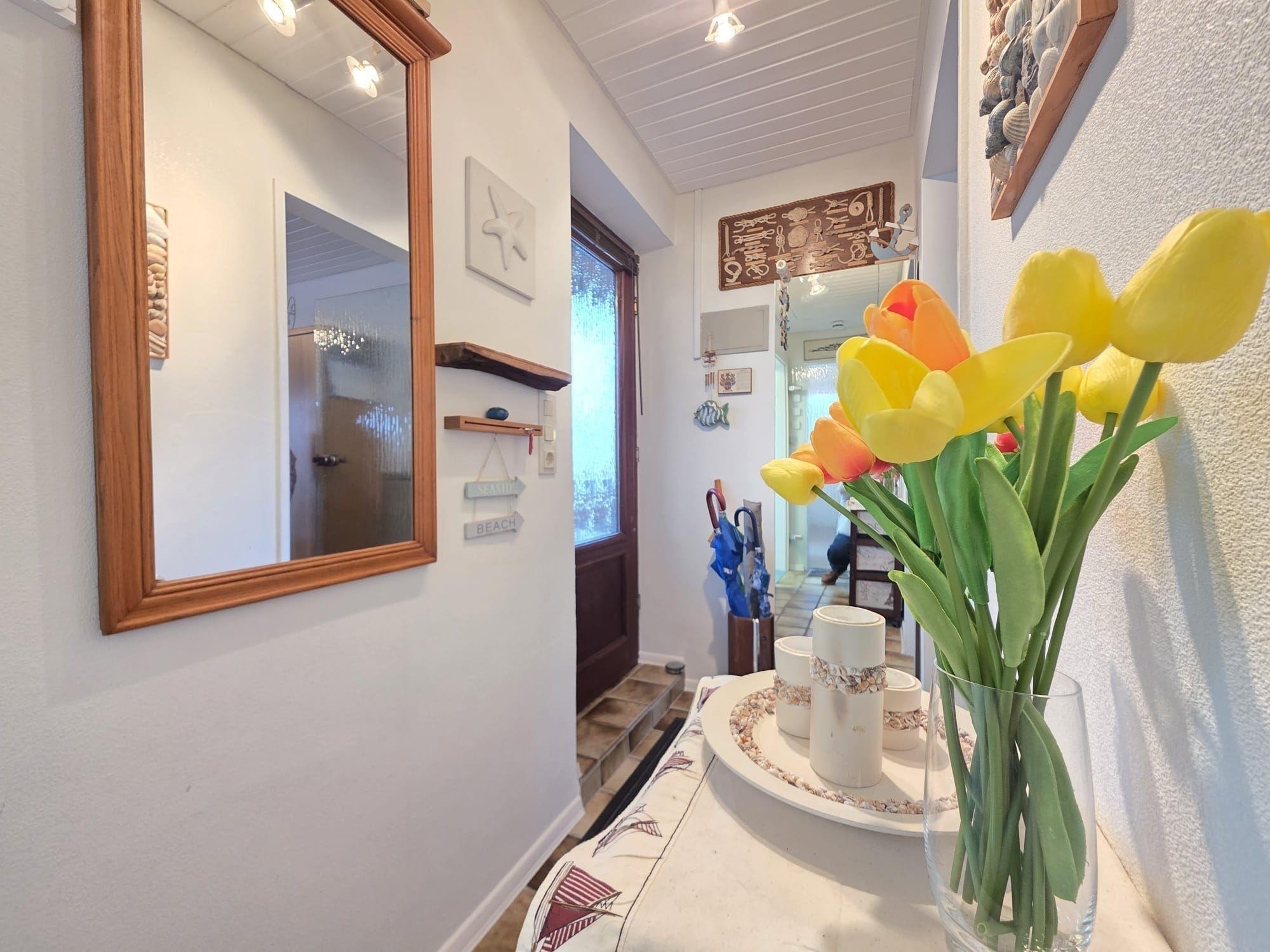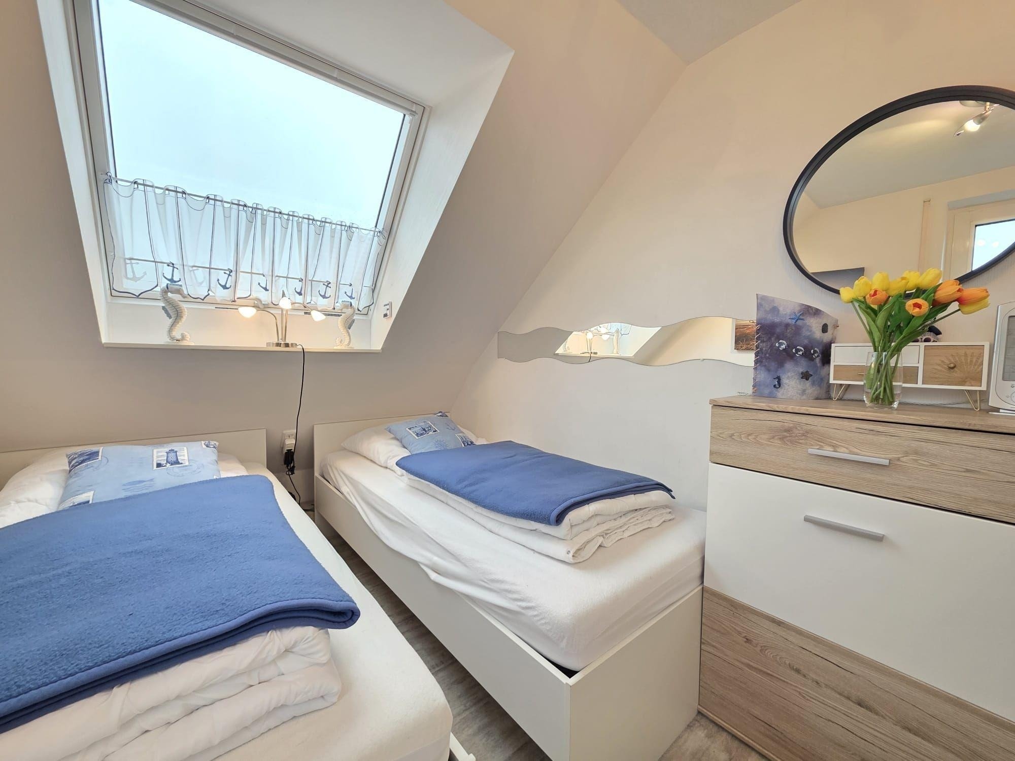 Die Ferienwohnung Lüttje Mööv in Norddeich ist eine zentrale Obergeschosswohnung, nur 250 Meter vom Strand entfernt. Sie bietet ein separates Schlafzimmer mit zwei bequemen Einzelbetten, ideal für Freunde oder Alleinreisende. Der offene Wohn- und Essbereich umfasst eine großzügige Couchlandschaft, die für gemütliche Stunden einlädt, sowie einen Esstisch für entspannte gemeinsame Mahlzeiten. Ein modernes Tageslichtbad sorgt für einen frischen Start in den Tag. Ein besonderes Highlight ist der sonnige Balkon, perfekt zum Entspannen. Die Wohnung eignet sich optimal für 1–2 Personen und liegt in ruhiger Wohnlage, während Restaurants, Einkaufsmöglichkeiten und Freizeitangebote gut zu Fuß erreichbar sind. Die Ausstattung bietet eine harmonische Verbindung aus Komfort und der Möglichkeit, die reizvolle Nordseeumgebung zu genießen.