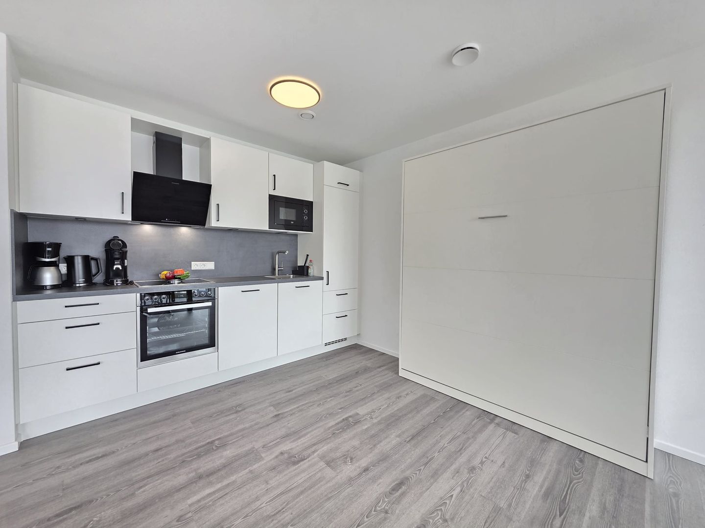 Die voll ausgestattete Küche ermöglicht Ihnen eine flexible und komfortable Selbstverpflegung. Herd, Backofen, Geschirrspüler, Kühlschrank und Kaffeemaschine stehen bereit, sodass Sie auch im Urlaub nicht auf gewohnten Komfort verzichten müssen.