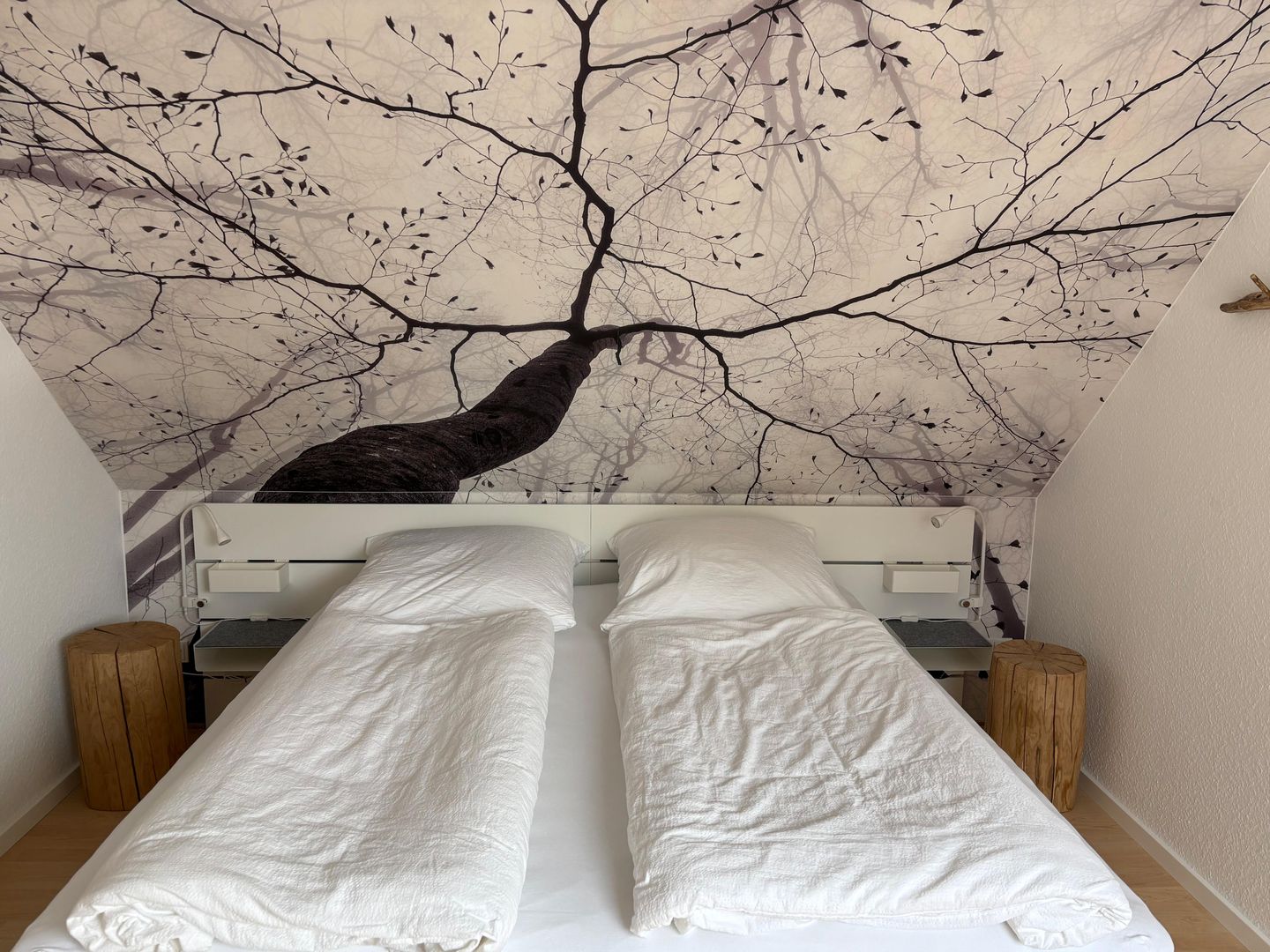 Sie betreten die Ferienwohnung Strandfloh durch einen kleinen Flur, der mit einer Garderobe ausgestattet ist. Von hier aus gelangen Sie in ein helles Duschbad mit Fenster, sowie in den Wohn- und Essbereich, das Herzstück des Hauses, wo Sie gemeinsame Momente genießen können. Hier finden Sie auch ein vollwertiges Schlafsofa. Die angrenzende Terrasse bietet einen privaten Außenbereich, um die wohltuende Nordseeluft zu genießen. Die Küche mag klein sein, ist jedoch funktional ausgestattet und bietet alles, was Sie für die Zubereitung leckerer Mahlzeiten benötigen. Eine schmucke Holztreppe führt Sie vom Flur aus in das Obergeschoss, wo Sie ein großes Schlafzimmer erwartet. Ein Dachflächenfenster durchflutet den Raum mit natürlichem Licht und bietet einen ersten Blick auf die Dünen. Durch eine Sitzgelegenheit kann man sich hierher zurückziehen, um z.B. in Ruhe ein Buch zu lesen.