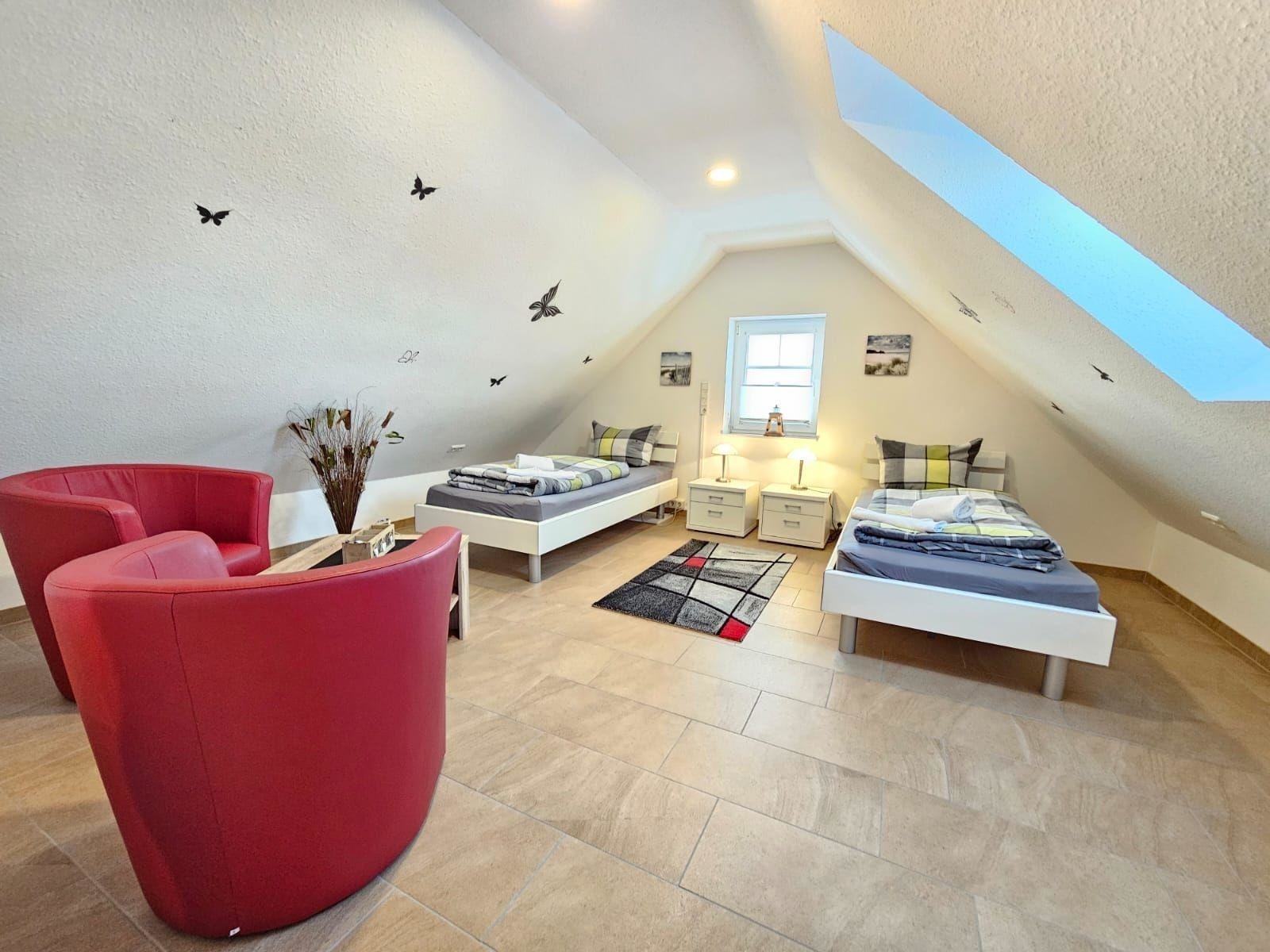 Die Ferienwohnung Strandperle in Norden erstreckt sich über zwei Etagen und bietet Platz für bis zu vier Personen. Im Erdgeschoss befindet sich ein großzügiges Wohnzimmer mit großen Fenstern, einem gemütlichen Sitzbereich und einem Flachbildfernseher. Die offene Wohnküche ist mit modernen Geräten wie Herd, Backofen, Kühlschrank, Kaffeemaschine und Wasserkocher ausgestattet und bietet direkten Zugang zum Essbereich. Ein Schlafzimmer mit einem komfortablen Doppelbett sorgt für erholsame Nächte. Im Obergeschoss befindet sich ein Kinderzimmer mit zwei stilvollen Einzelbetten. Das moderne Badezimmer ist mit Dusche, Waschbecken und WC ausgestattet. Zusätzlich stehen kostenloses WLAN sowie ein Flachbildfernseher zur Verfügung. Ein Parkplatz direkt an der Wohnung ergänzt das Angebot. Bettwäsche und Handtücher können auf Wunsch zubuchbar sein. Diese Wohnung ist ideal für Familien, Paare oder Freunde, die einen komfortablen Rückzugsort an der Nordseeküste suchen.