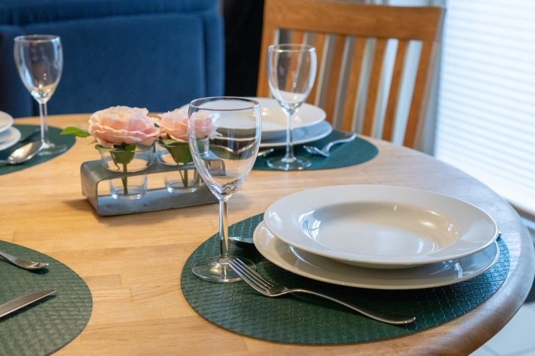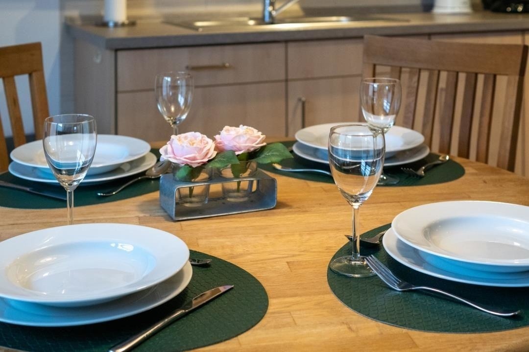 Für Unterhaltung sorgen Internet, WLAN, TV, Radio, ein DVD-Spieler sowie Bücher und Spiele. Die Küche ist offen zum Wohnzimmer und ausgestattet mit einem Ceranherd, einem Gefrierfach oder -schrank, einer Espressomaschine, einer Mikrowelle, einem Kühlschrank und einer Spülmaschine. Weitere Küchengeräte umfassen eine Kaffeemaschine, einen Wasserkocher, einen Mixer, einen Toaster, einen Eierkocher und einen Elektrogrill. Geschirr und Besteck, Geschirrhandtücher und Gewürze sind ebenfalls vorhanden, ebenso wie ein Abfalleimer.