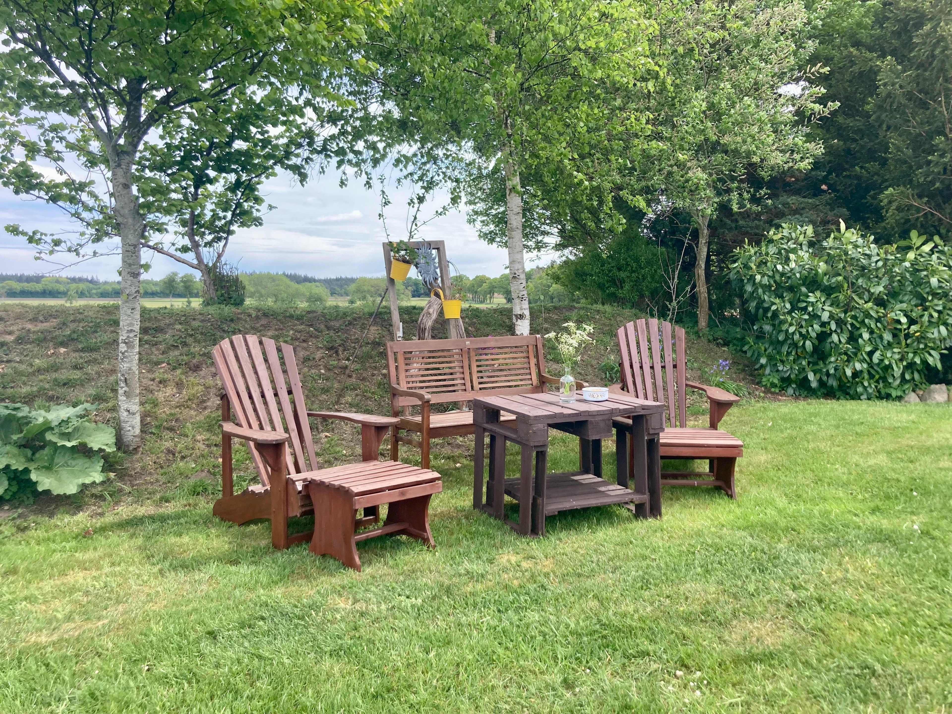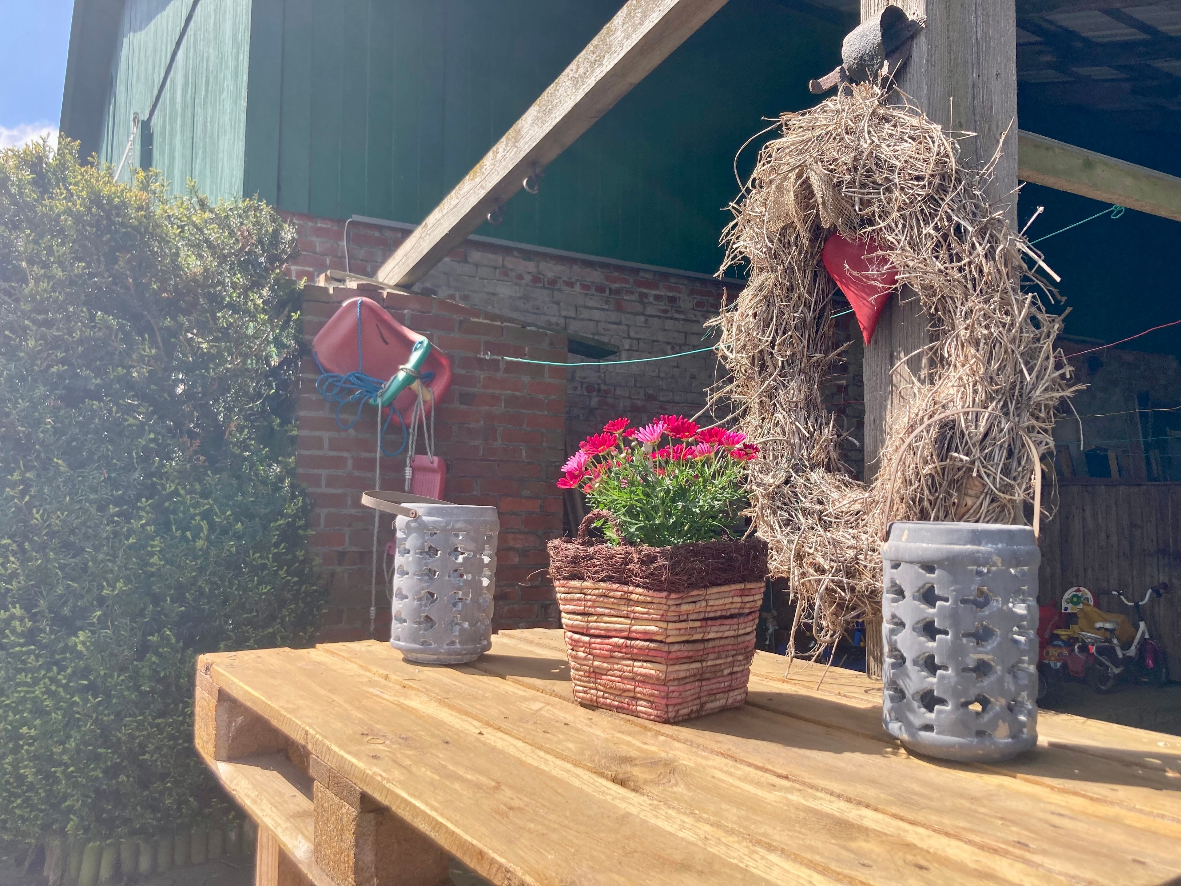 Dieser Ferienwohnung steht zusammen mit einer weiteren Wohnung im Erdgeschoß eine große, überdachte Terrasse in angrenzender Scheune mit Mobiliar und Holzkohlegrill zur gemeinsamen Nutzung zur Verfügung.