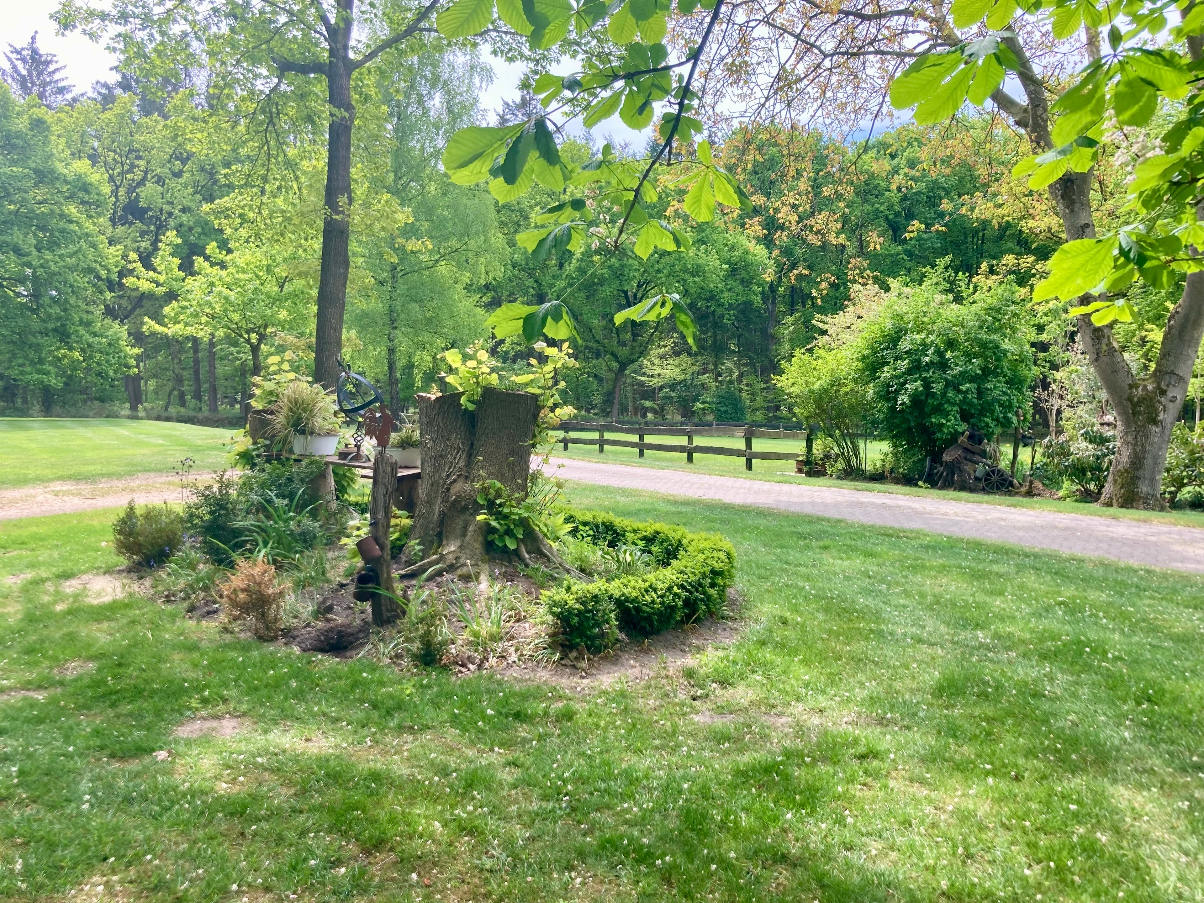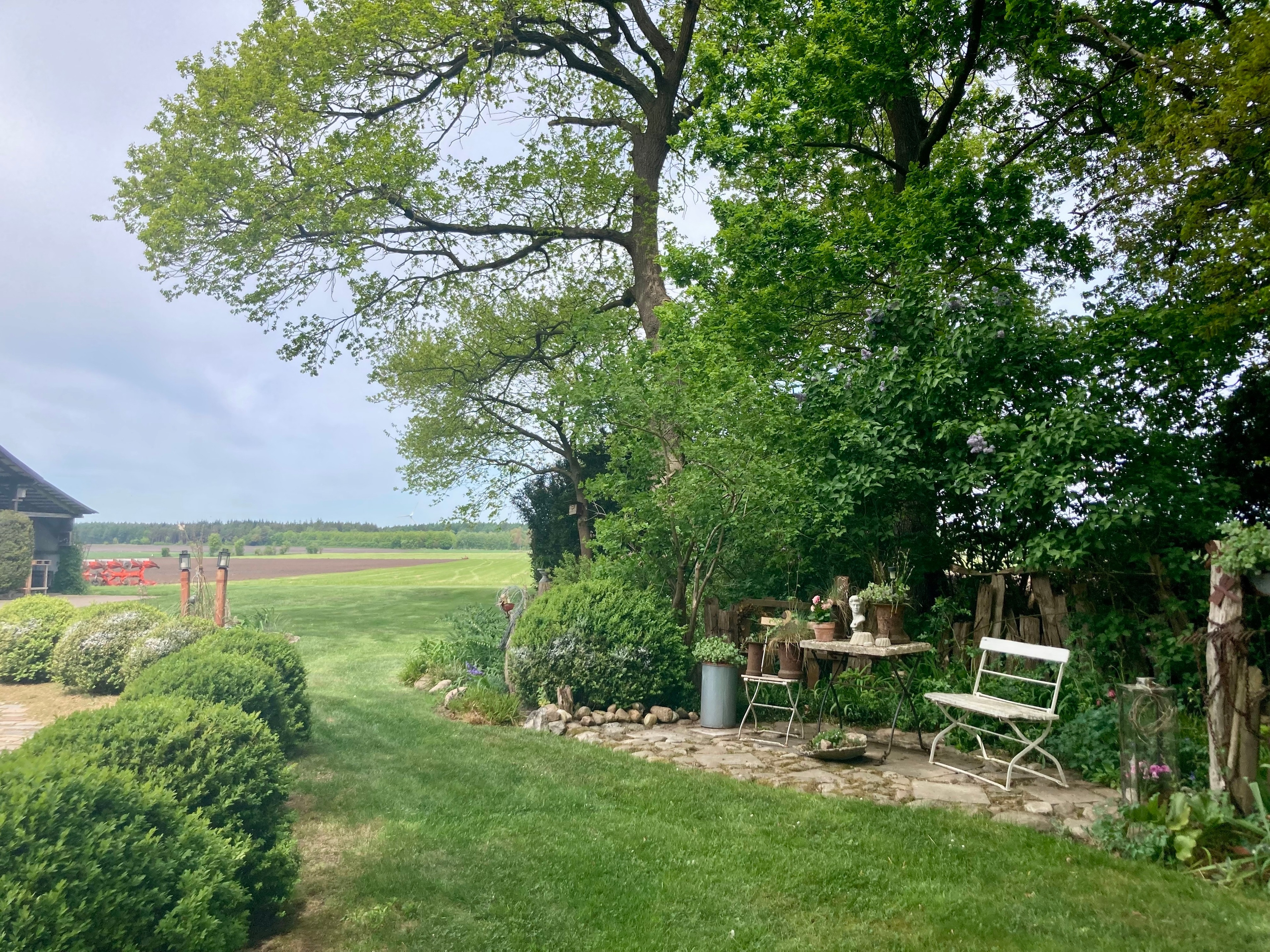Das Haus steht am Ortsrand von Armstorf (2,5 km), unmittelbar am Waldrand, auf einem ca. 3.000m² großen, sehr gepflegten, offenen Gartengrundstück mit Rasenspielfläche, altem Baumbestand sowie mehreren Freisitzen. Zur Hausrückseite eröffnet sich eine weite und freie Sicht über Wiesen und Felder. PKW-Stellplätze vorhanden; auf Anfrage Garagenstellplatz (€ 5 pro Tag).