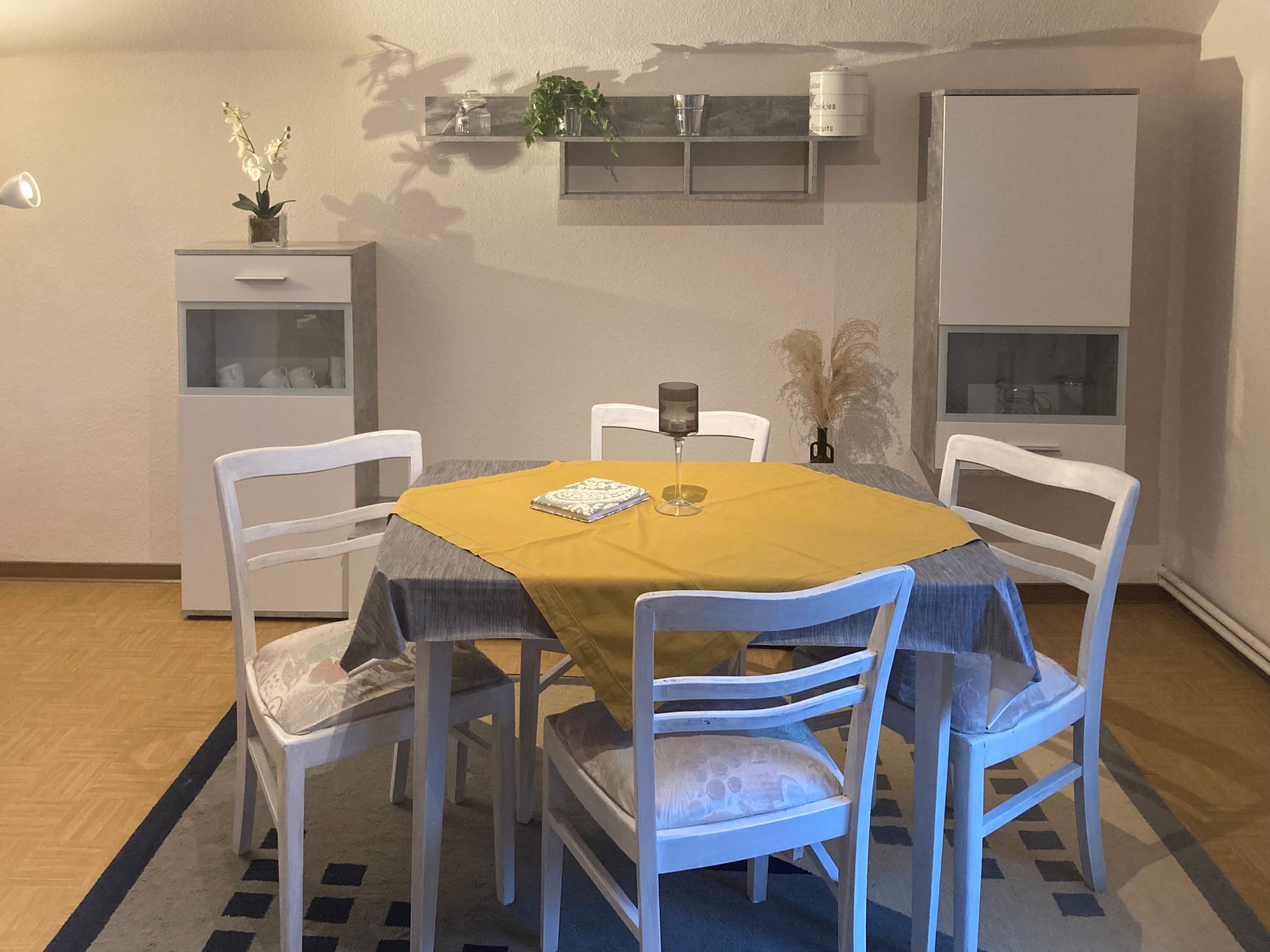 Ausstattung: Staubsauger, Bügelbrett/-eisen, Fliegengitter in Wohnraum und Schlafzimmern. Laminatböden. Gas-Zentralheizung.