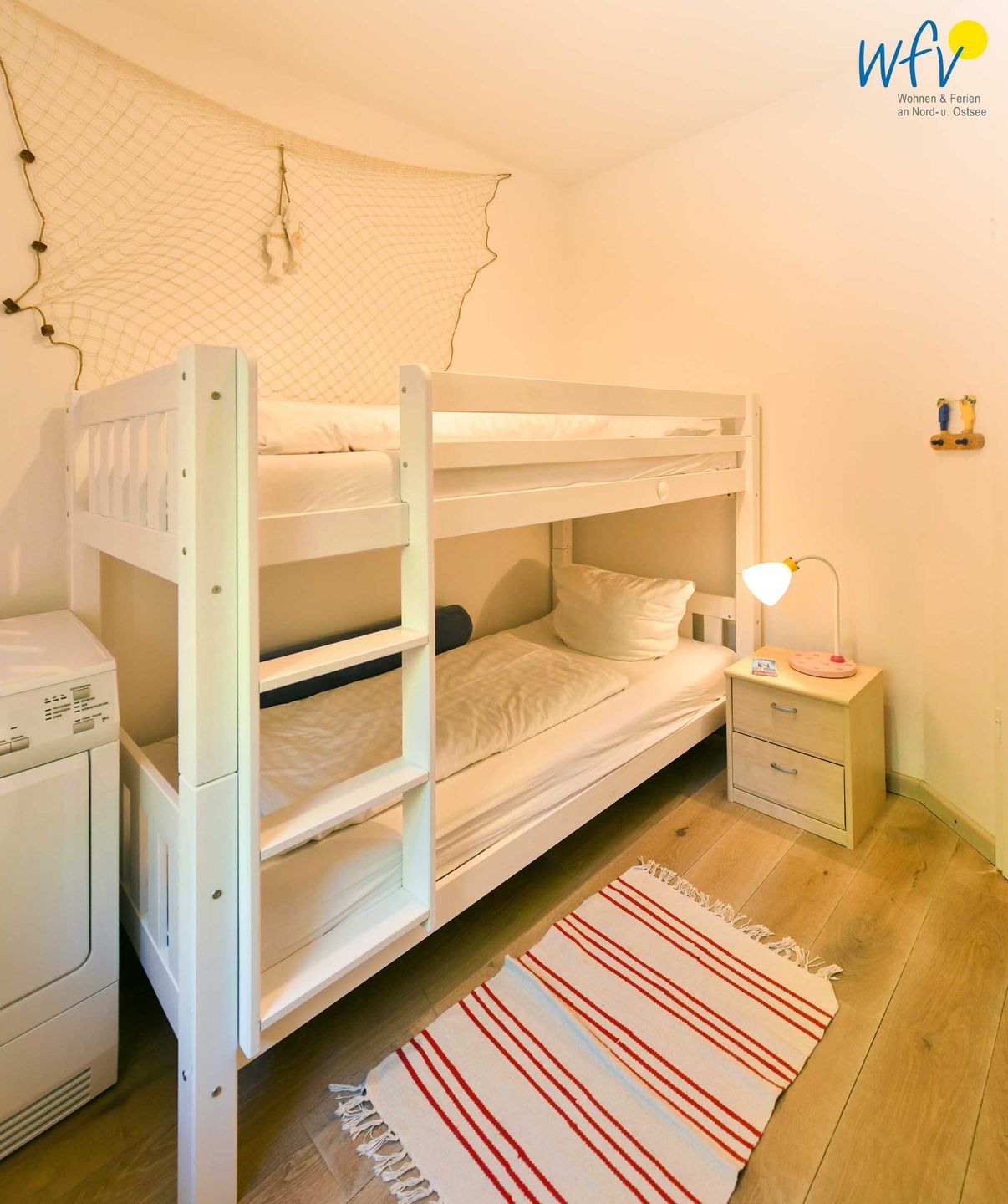 Drei separate Schlafzimmer bieten Ihnen angenehme Rückzugsmöglichkeiten. Das Elternschlafzimmer (EG) ist mit einem Doppelbett (180 x 200 cm) und einem Kleiderschrank ausgestattet, das Kinderschlafzimmer (EG) mit einem Etagenbett (je 90 x 200 cm) sowie mit einem kleinen Kleiderschrank und einem kleinen Schreibtisch. In dem separaten Schlafzimmer im 2. OG befindet sich eine Schlafcouch für zwei Personen (160 x 200 cm), die Sie bei Bedarf ebenfalls nutzen können.