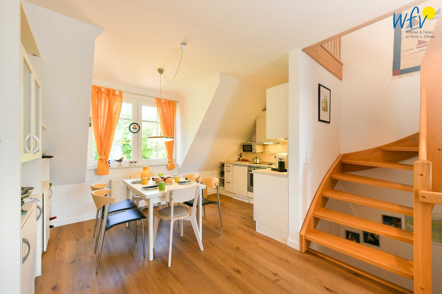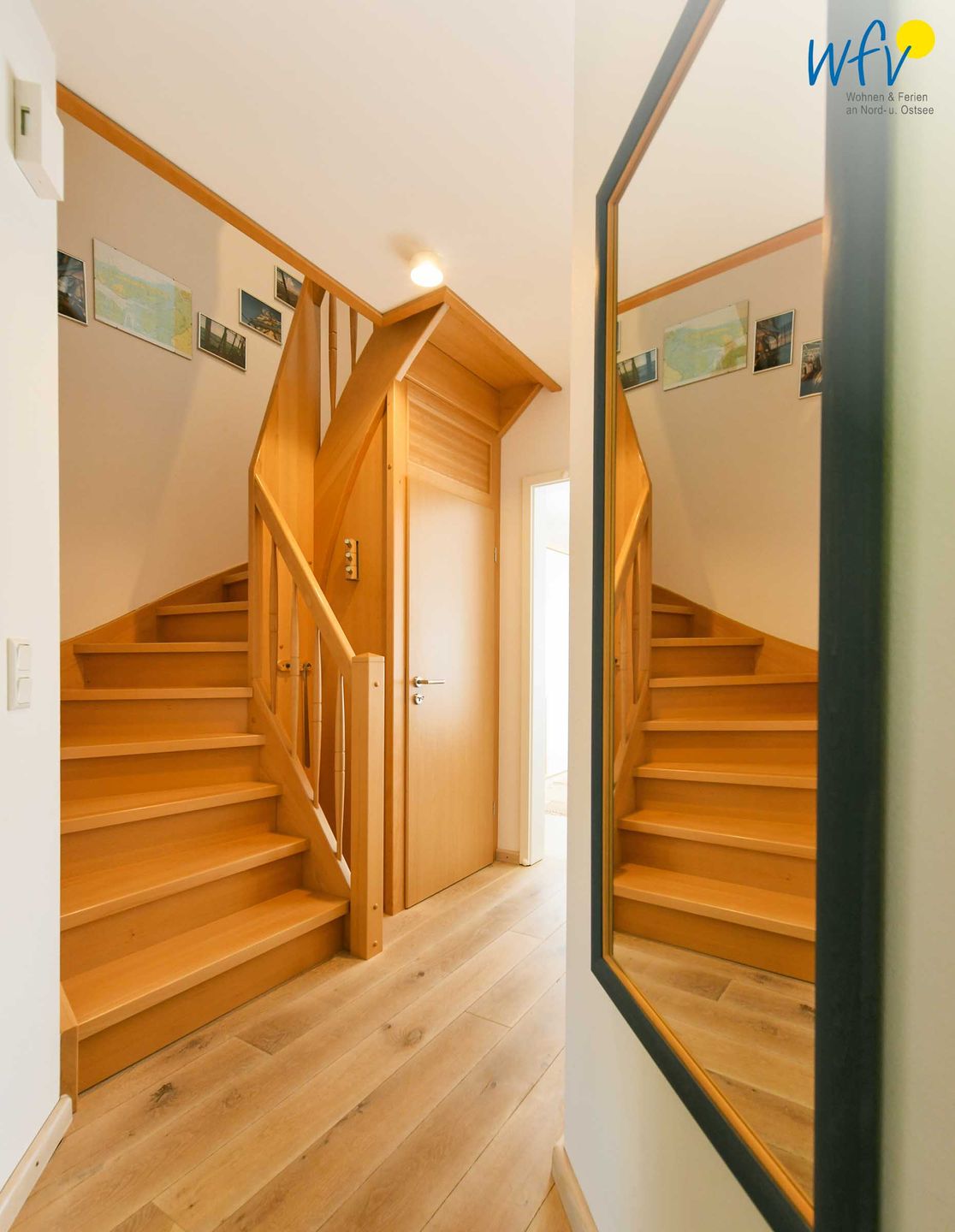 Durch die optimale Raumaufteilung über drei Etagen mit großem Wohnraum und drei separaten Schlafzimmern bietet Ihnen die Ferienwohnung Platz für einen Urlaub mit bis zu sechs Personen.