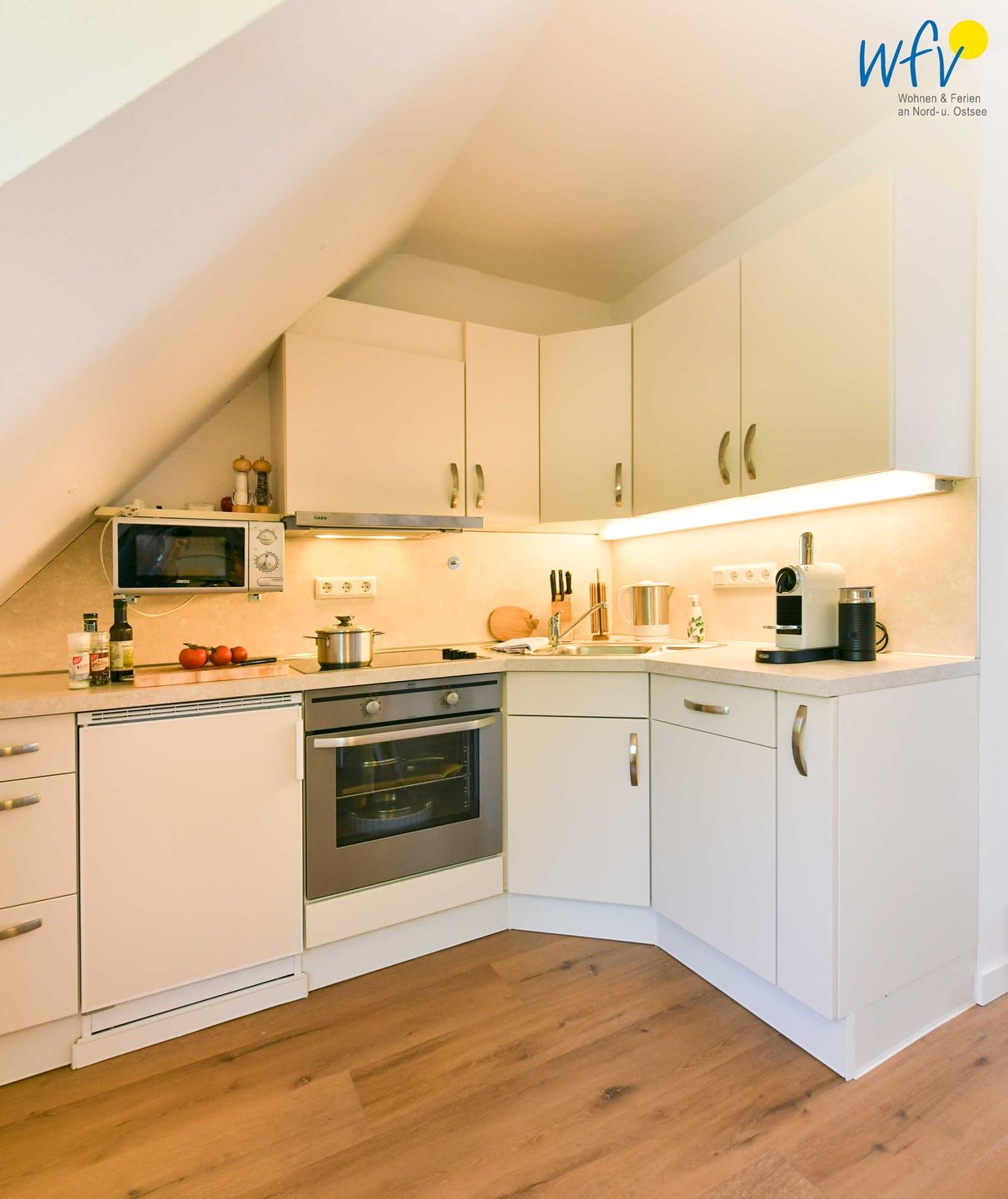 Beim Ferienfrühstück lassen sich am Esstisch mit Blick ins Grüne tolle Pläne für den Urlaubstag auf Juist machen. Und während einer von Ihnen den Rucksack für den Ausflug packt, kann in der offenen Küche mit Ceranherd, Backofen und Mikrowelle der Proviant für unterwegs zubereitet werden. Den Abwasch übernimmt die Spülmaschine.