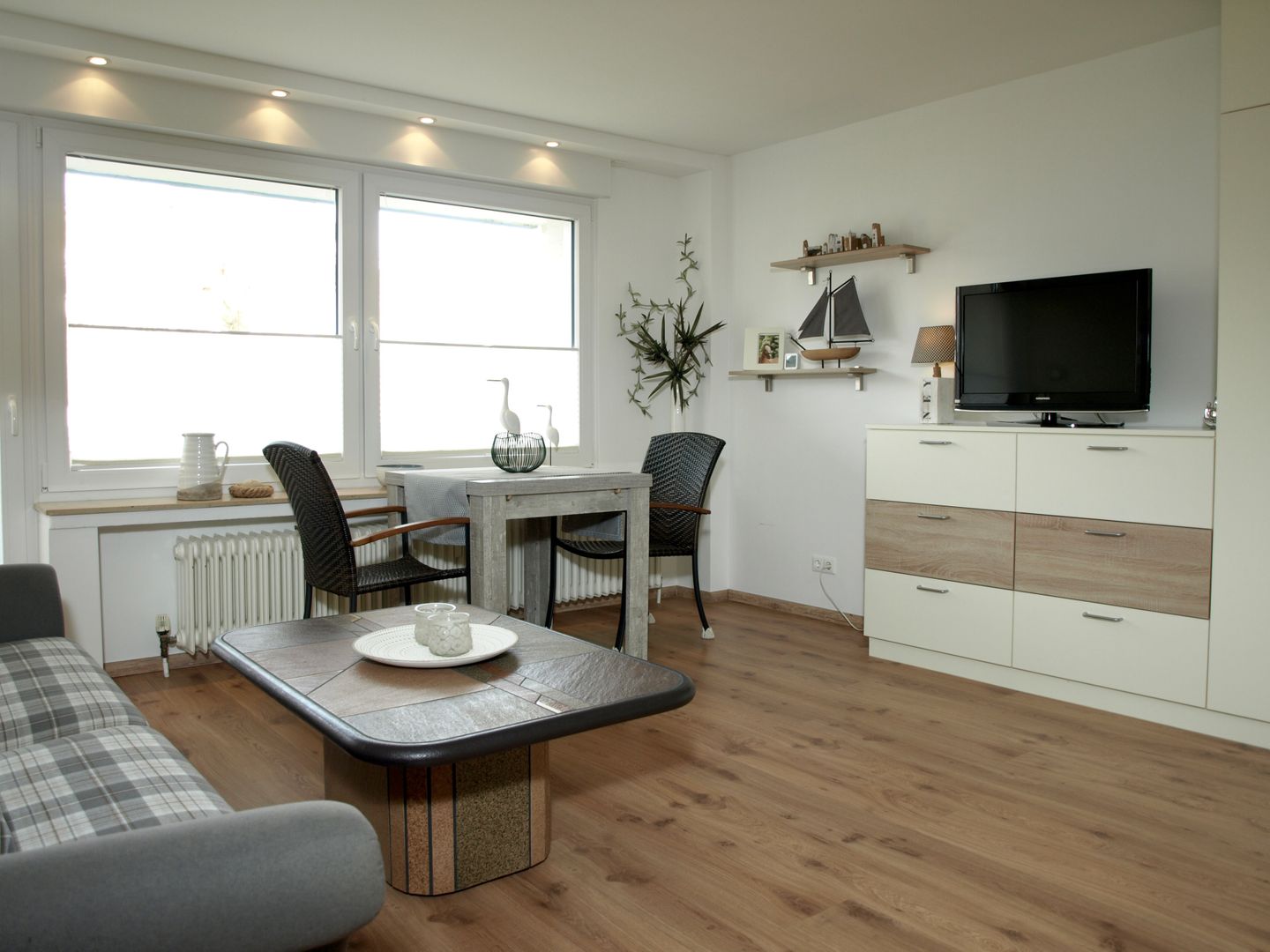 Zur Wohnung gehört außerdem eine Terrasse, auf der Sie entspannen und die frische Nordseeluft genießen können (Hinweis: Grillen ist auf der Terrasse nicht gestattet).