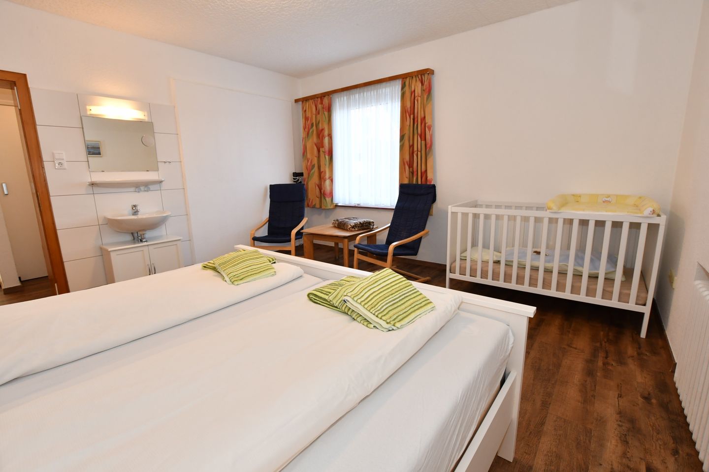 Diese geräumige Wohnung mit einem nach Süden ausgerichteten Balkon (inkl. Gartenbestuhlung) mit Blick auf den neuen Leuchtturm hat einen sehr großen Wohnraum mit 2 Schrankbetten, Sat-TV mit Radio, Essecke und ist optisch getrennt von der kleinen Küche. Sie ist mit einem 4-Platten Herd, Backofen, Kühlschrank ohne Gefrierfach, Kaffeemaschine, Toaster, Wasserkocher, ausgestattet und verfügt über ausreichend Kochgeschirr. Im großen Schlafzimmer können 2 Personen in einem Doppelbett schlafen, außerdem gibt es noch ein kleines Zimmer mit einem Etagenbett, dass nur für Kinder geeignet ist, da dies nur einen schmalen Einstieg hat. Ein Tageslicht-Bad mit Dusche und WC vervollständigen das Bild. Eine Waschmaschine und Trockner sind im gemeinschaftlich nutzbaren Waschraum vorhanden. Ein Kinderbett und Hochstuhl für unsere jüngsten Besucher steht Ihnen natürlich kostenlos zur Verfügung.