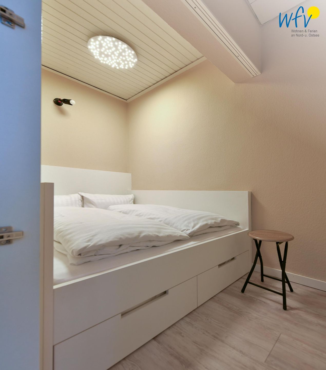 In der Ferienwohnung gibt es Schlafmöglichkeiten auf zwei komfortablen Schrankbetten (je 90 × 200 cm) im Wohnraum sowie einem kleinen Doppelbett (160 × 200 cm) in einem separaten Raum, der durch eine Holzwand abgegrenzt ist. Zusätzlich kann die Couch als Schlafcouch (120 × 200 cm) genutzt werden.
