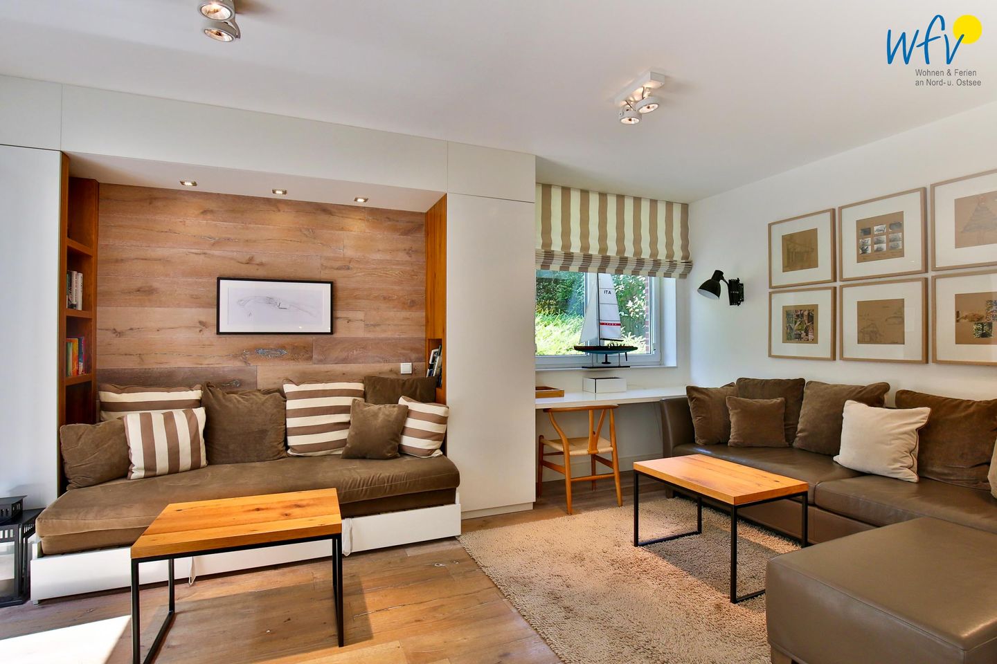 Stilvoll, komfortabel und in schönster Einrichtung – so wohnen Sie in dieser modernen Ferienwohnung auf Wangerooge! Helle Holzdielen und weiße Wandvertäfelungen verleihen der Ferienwohnung einen hochwertigen und gemütlichen Charakter.