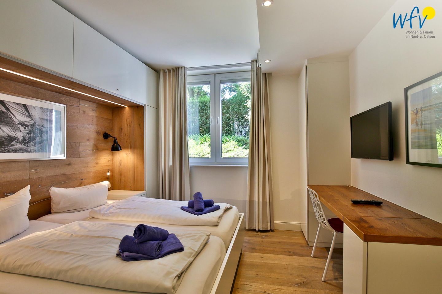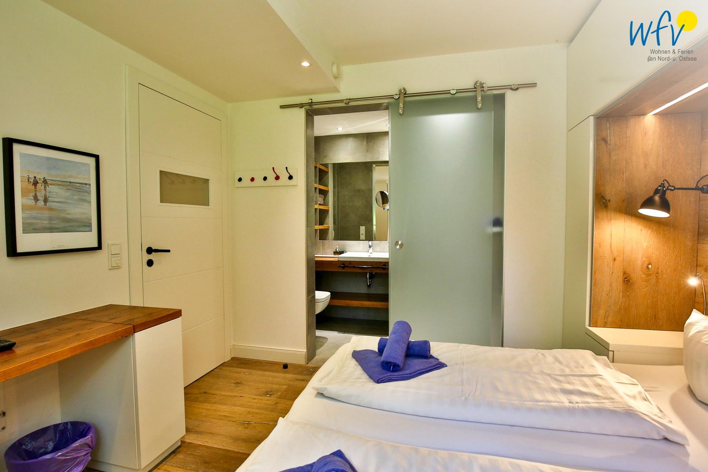Zum ausgiebigen Ausschlafen locken die herrlich bequemen Betten der Ferienwohnung! In zwei separaten Schlafzimmern bieten zwei Doppelbetten und ein Etagenbett Platz für sechs Personen. Bei Bedarf kann das Ausziehsofa ebenfalls als Schlafmöglichkeit genutzt werden, es lässt sich durch eine Schiebetür vom Wohnraum trennen.