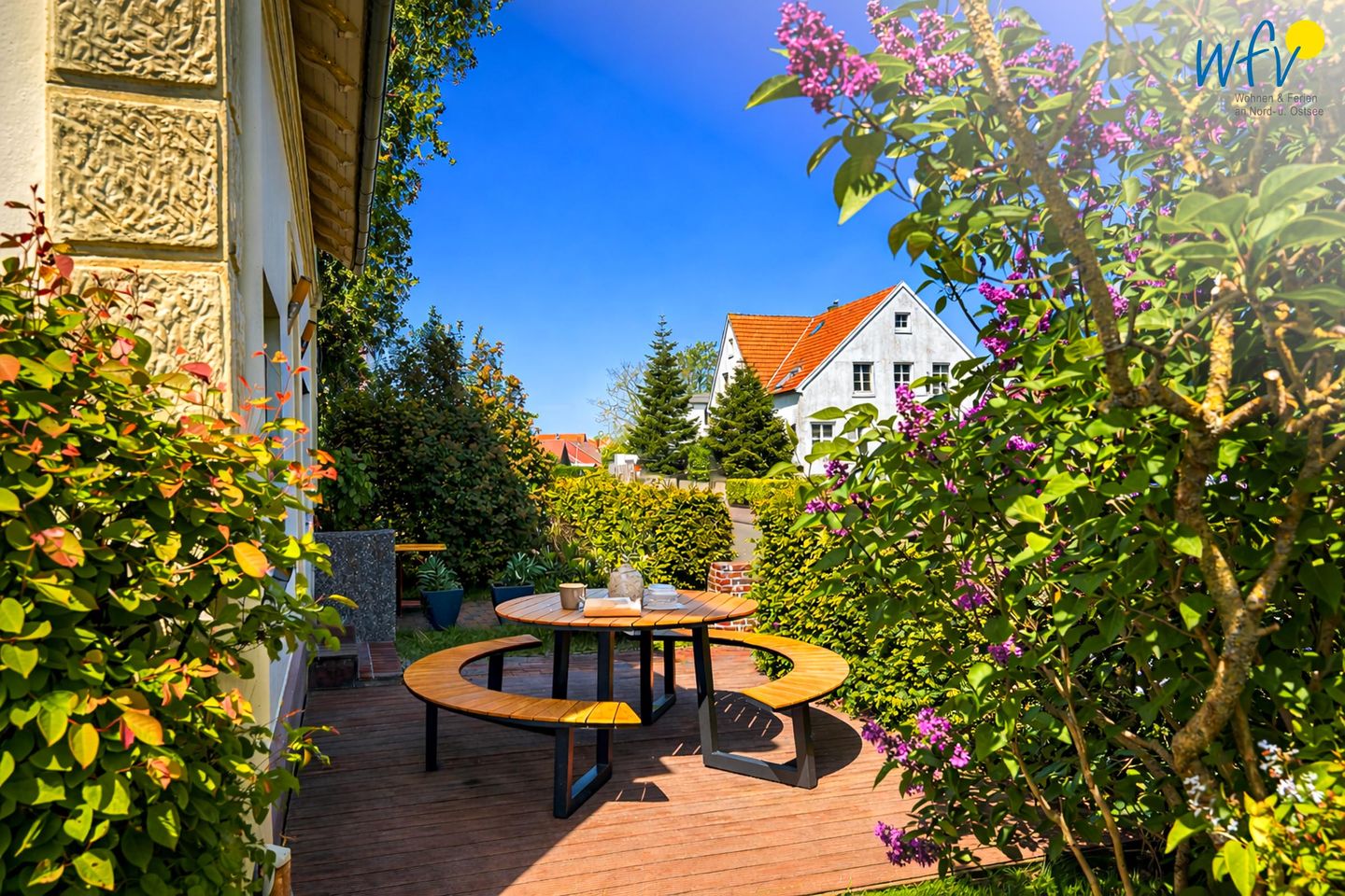 Frische Nordseeluft, eine Terrasse im Grünen und entspannte Inseltage – willkommen im „Deck 1“ auf Wangerooge.