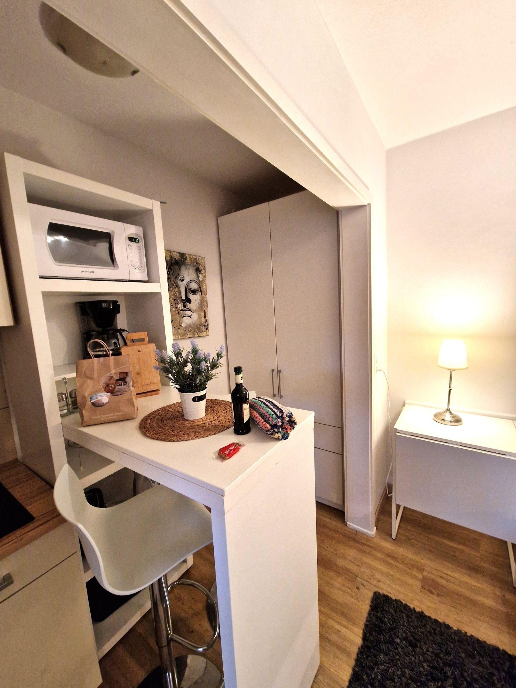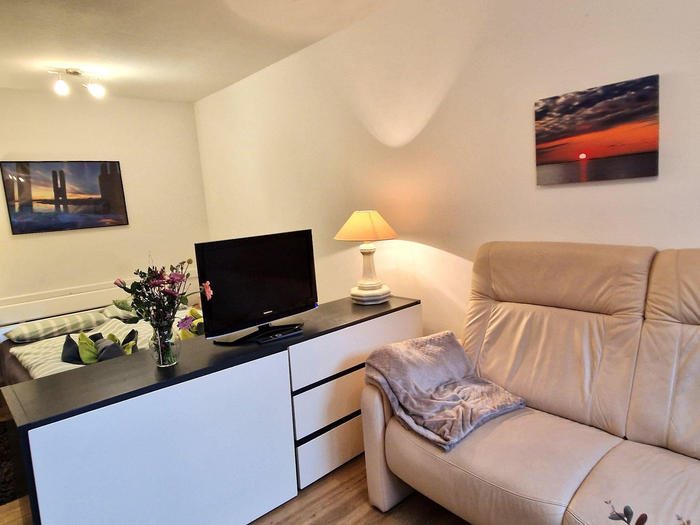 Das kleine Apartment in Norddeich liegt im Erdgeschoss und bietet Platz für bis zu 2 Personen. Der kombinierte Wohn-/Schlafbereich ist gemütlich und lädt zum Entspannen ein. Angrenzend befindet sich eine Küchenzeile, die mit allen notwendigen Utensilien ausgestattet ist. Zudem verfügt das Apartment über ein Duschbad, in dem eine Stufe vorhanden ist.