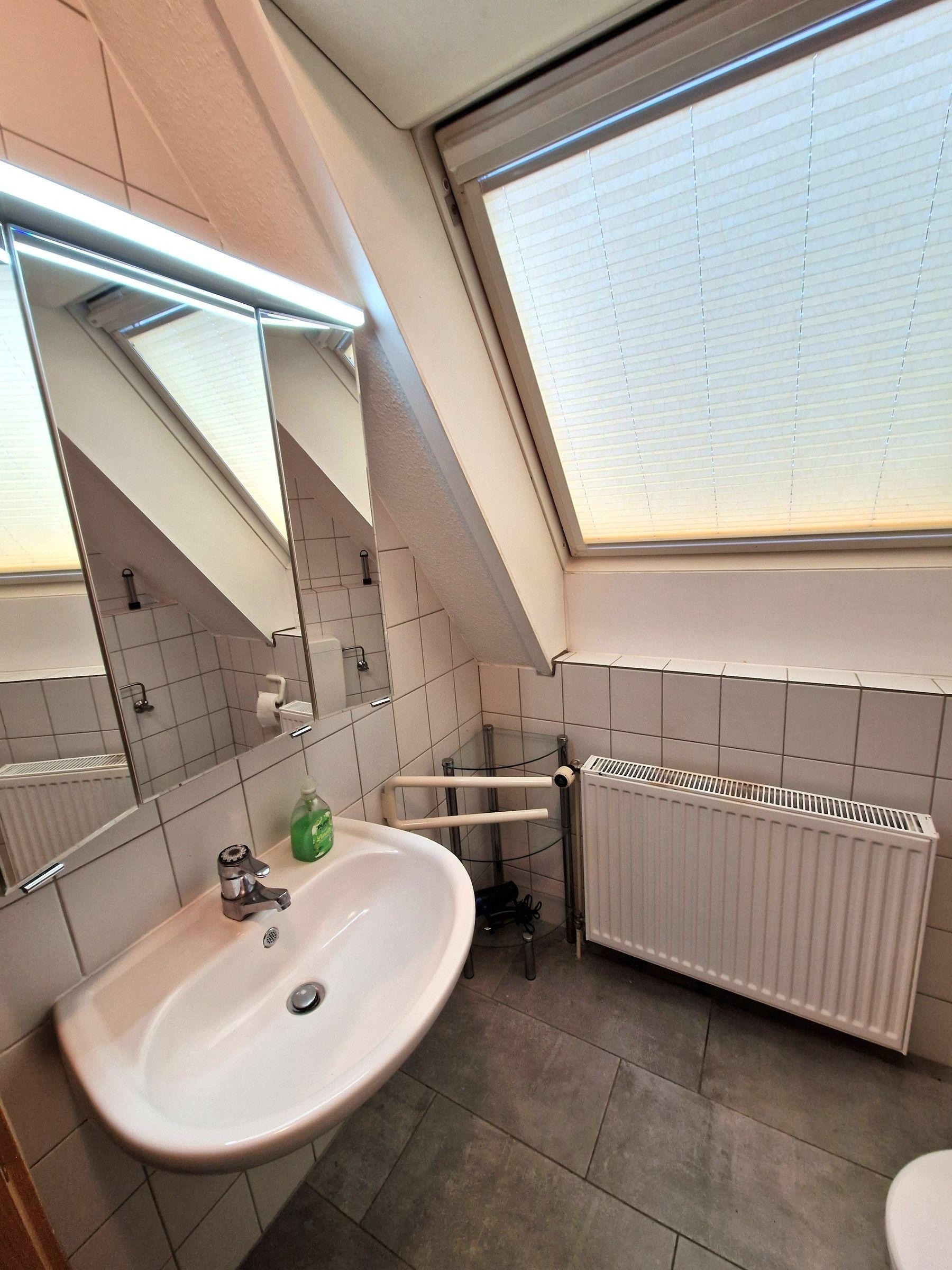 Die attraktive Ferienwohnung im Obergeschoss bietet Platz für bis zu 2 Personen. Der Wohn-Essbereich ist gemütlich gestaltet und verfügt über eine Küchenzeile, die alle notwendigen Utensilien bereitstellt. Das separate Schlafzimmer ist mit einem komfortablen Doppelbett ausgestattet. Ein modernes Duschbad ergänzt die Räumlichkeiten.