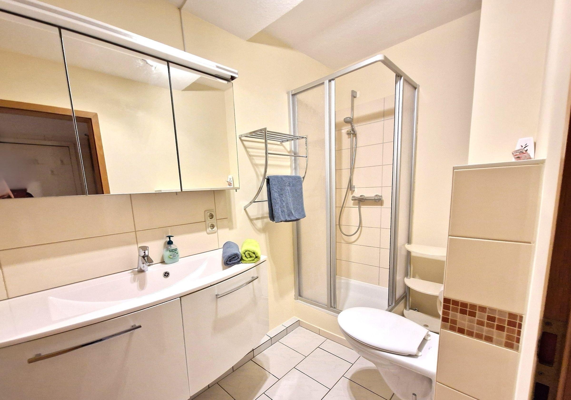 Das helle Duschbad bietet alles Notwendige für die tägliche Hygiene. Der gemütliche Wohnbereich ist mit einem Sofa, einem Sessel und einem Esstisch ausgestattet und lädt zum Verweilen ein. Zur Unterhaltung steht ein TV bereit. WLAN sorgt für eine konstante Internetverbindung. Die Wohnung ist allergikergeeignet und bietet zudem einen Parkplatz. Die Heizung sorgt für angenehme Temperaturen zu jeder Jahreszeit. Geschirr, Besteck sowie ein Staubsauger sind ebenfalls vorhanden.