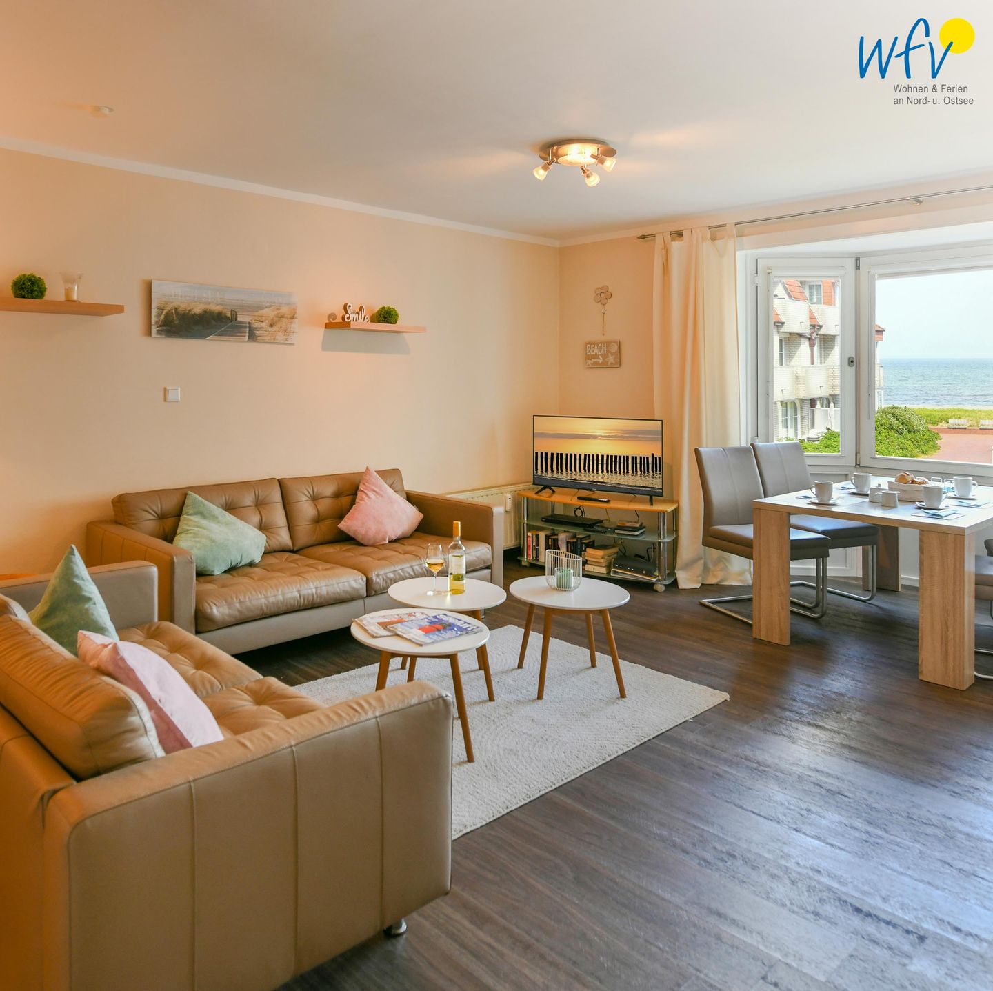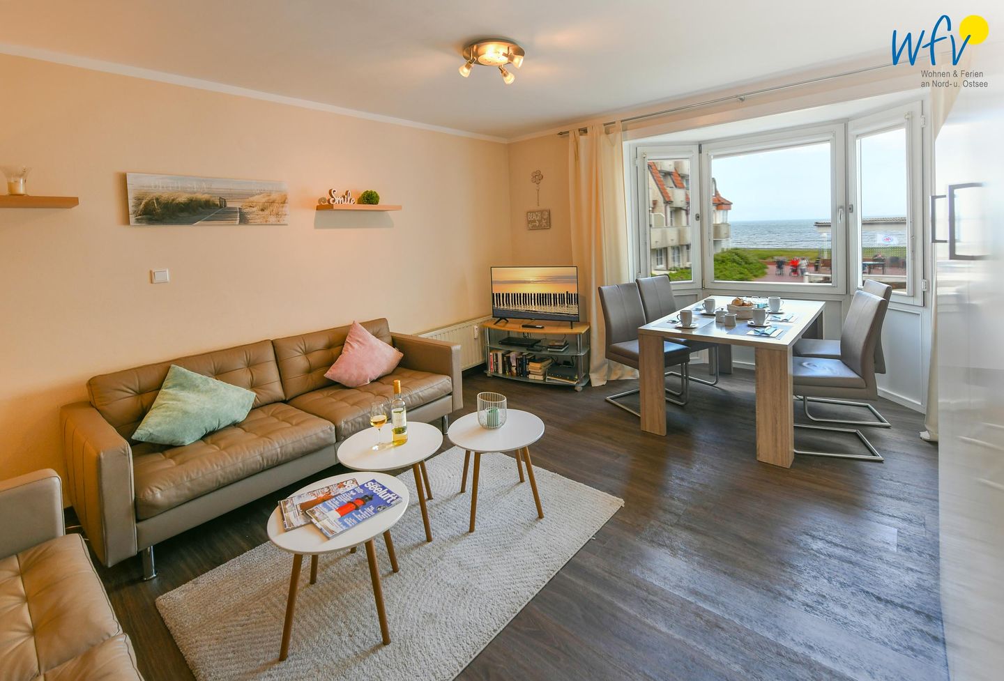 Ein Blick aus dem Fenster und schon sehen Sie die Nordsee – das ist Urlaub, oder? In unserer “Ferienwohnung 9” im “Haus Südwind”, nur 50 m von der Promenade und dem Badestrand entfernt, erwarten Sie rundum entspannte Auszeiten auf Wangerooge. Mit einem gemütlichen Wohnraum, einer modernen Küche, einem eleganten Duschbad und zwei separaten Schlafzimmern bietet Sie Ihnen einen Wohlfühlort für bis zu sechs Personen – perfekt für den Urlaub mit der Familie oder mit Freunden.