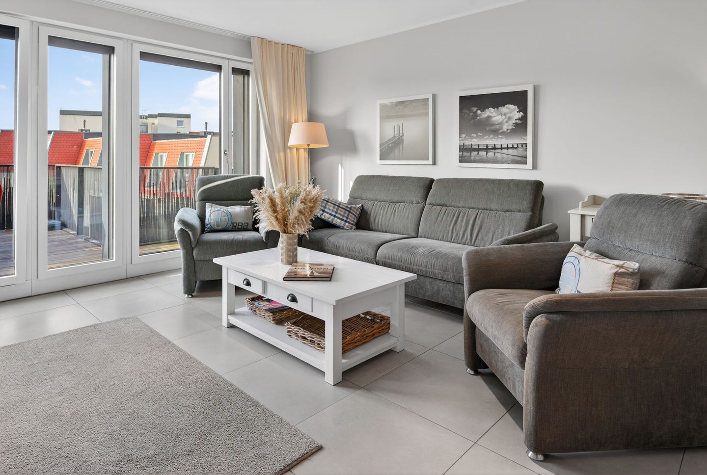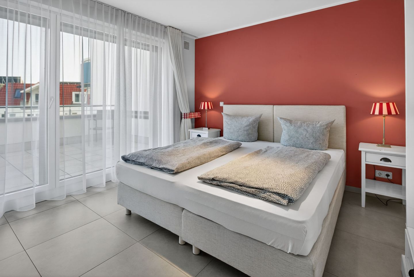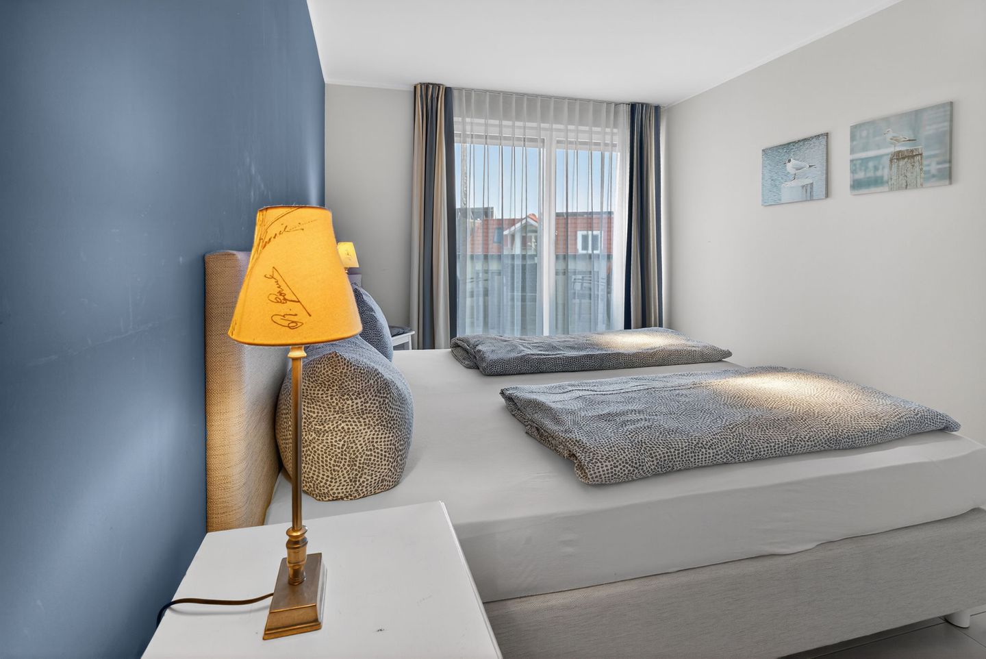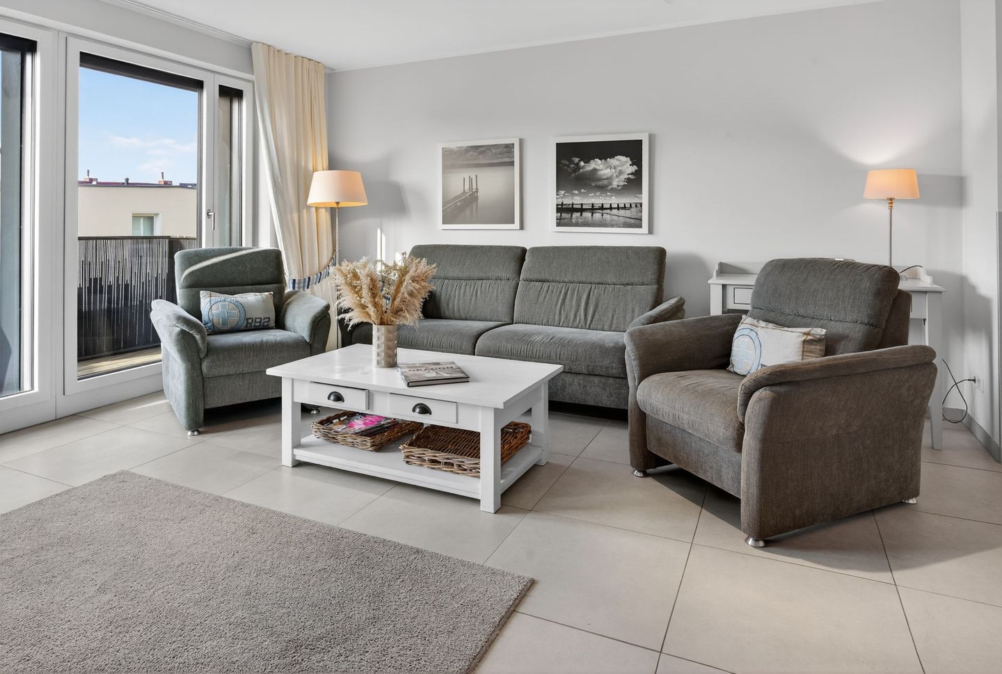 Die Wohnung bietet auf einer Wohnfläche von 79qm, ergänzt durch zwei Balkone (insgesamt 17,5qm), ausreichend Platz für 4 Personen. Bei der Inneneinrichtung wurde auf helle Farben und natürliche Materialien Wert gelegt. Die Wohnung verfügt über zwei Schlafzimmer (jeweils mit einem Doppelbett eingerichtet), ein Wohnzimmer mit offener Küche und einem Essbereich sowie ein Badezimmer mit einer Dusche, WC und zwei Handwaschbecken. Eine Waschmaschine und ein Wäschetrockner stehen (für die gemeinschaftliche Nutzung) gegen Münzeinwurf zur Verfügung. Fahrräder können im Keller abgestellt werden. Hunde sind in dieser Ferienwohnung nicht erlaubt.