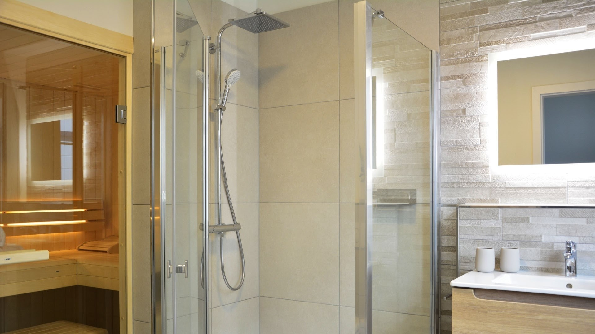Komfort dank Fußbodenheizung und eigener Sauna.