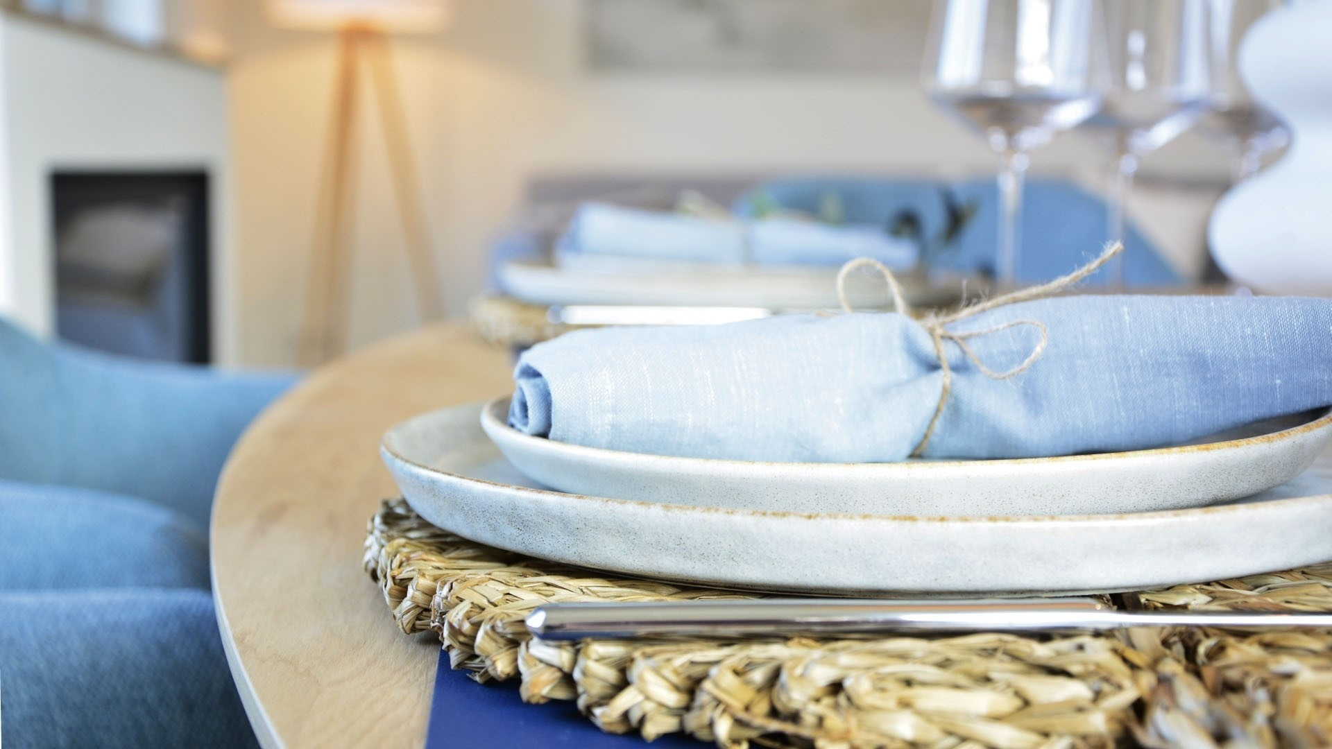 Gemütlicher Wohnbereich mit Elektrokamin und Smart-TV.