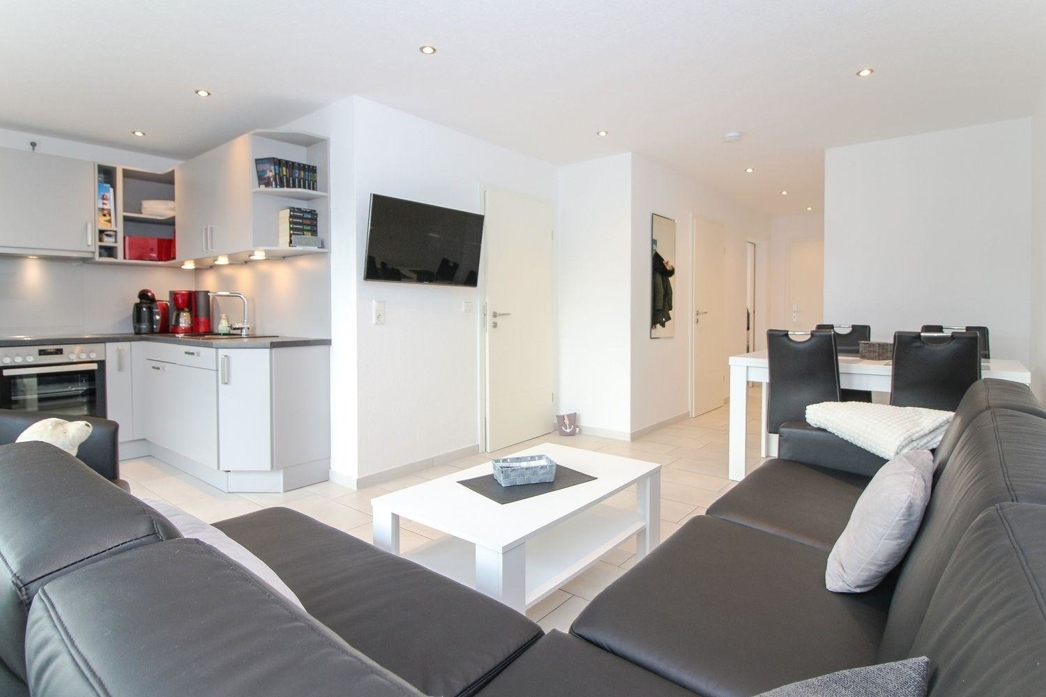 Die Wohnung ist für 4 Personen samt Haustier geeignet und verfügt über zwei Schlafräume, einem Bad und einem großen Wohnbereich welcher sich seinen Platz mit einer Essecke und einer vollausgestatteten Küche teilt.