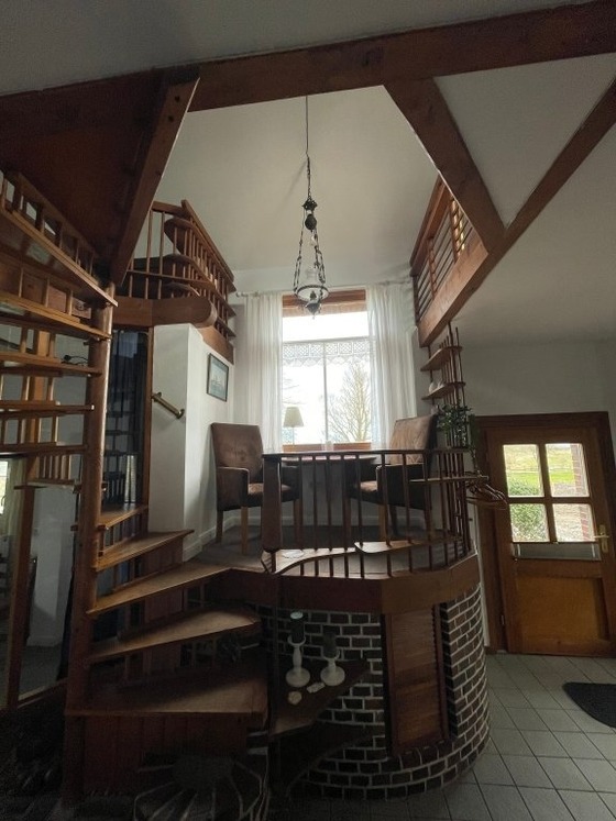 Im urigen Wohn- und Kochbereich im Erdgeschoss ist das historische Balkenkonstrukt erhalten worden. Das Zentrum der Wohnung bildet der massive Esstisch. Echte Wohlfühlatmosphäre schaffen der Kaminofen und die Empore mit Ausblick über die Wiesen und Weiden der Umgebung. Die beiden Badezimmer befinden sich ebenfalls im Erdgeschoss. Diese sind komplett modernisiert . Die Küche ist voll ausgestattet mit Kaffeemaschine, Mikrowelle, Backofen, Ceranfeld Kochstellen, Spülmaschine und Kühlschrank.
